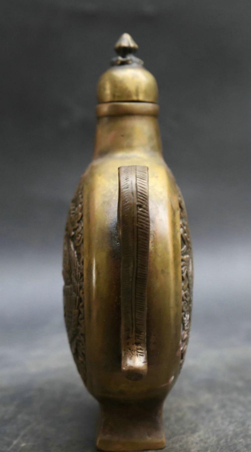 Antique Chinese Brass Auspicious Dragon & Phoenix Pot......Material: Brass;Size: Long: 7.9". Width : 7.1". Height : 2.2"Weight: 828 Grams; Origin - China