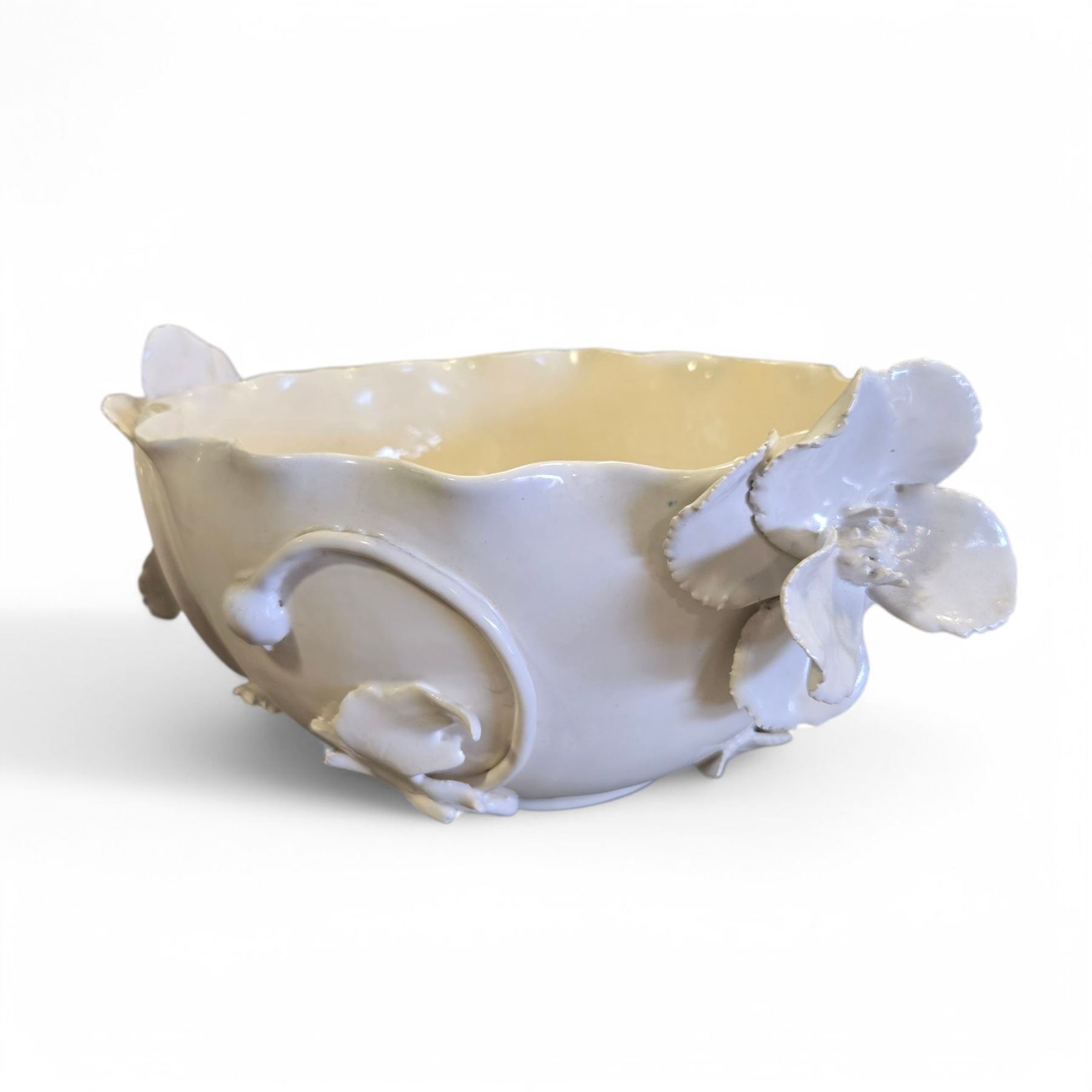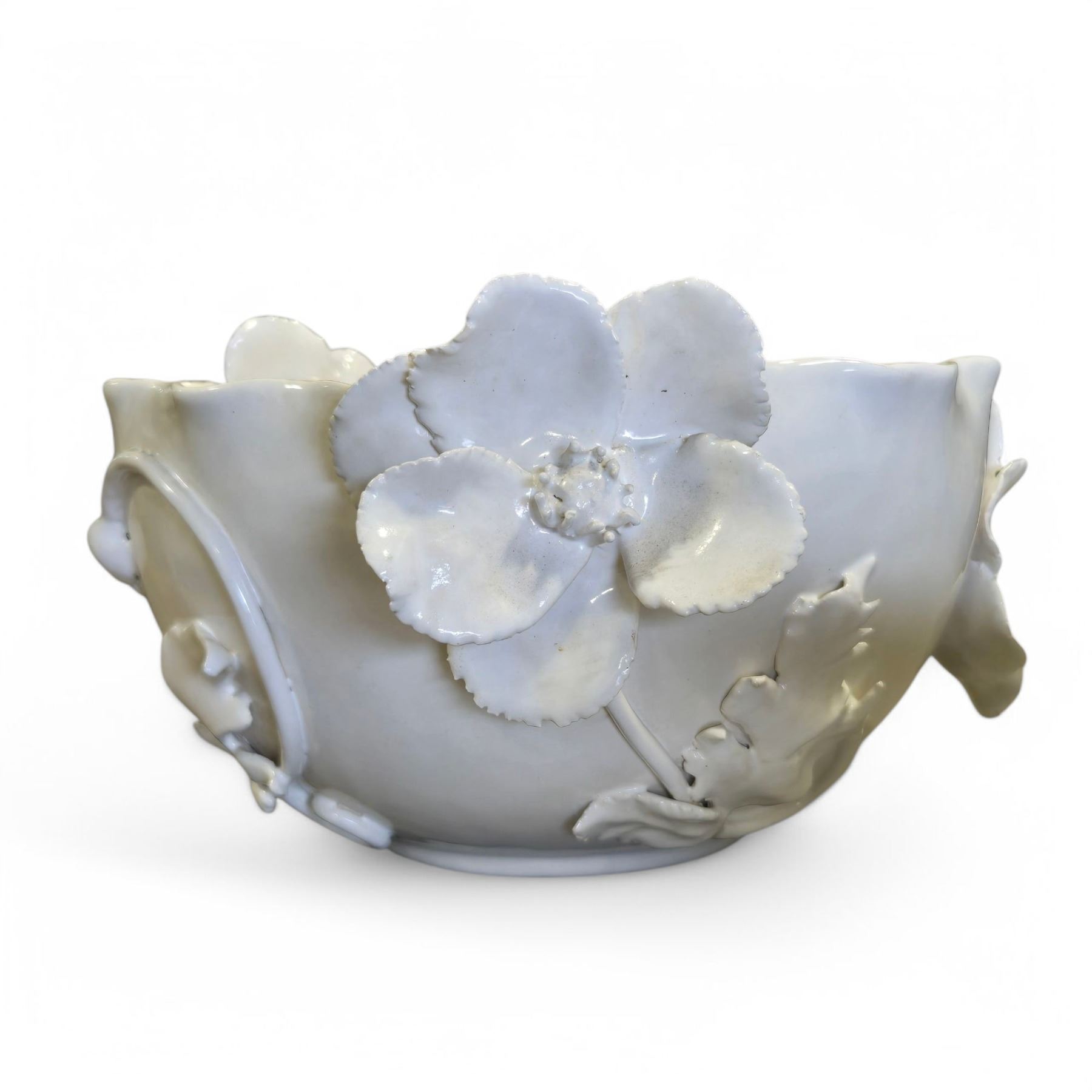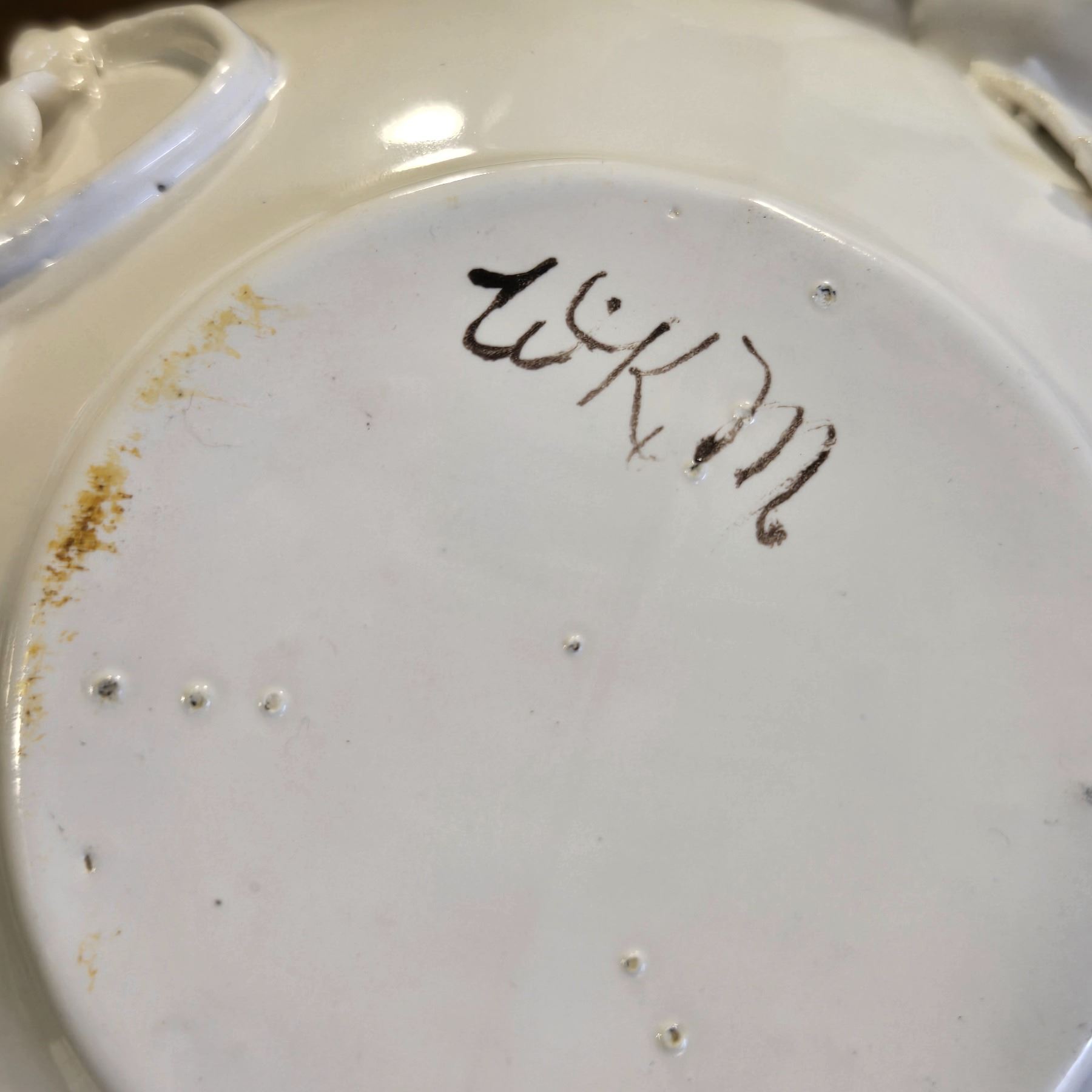 Antique Chinese Blanc de Chine Porcelain Lotus Bowl - Handwritten "WKM" Signature