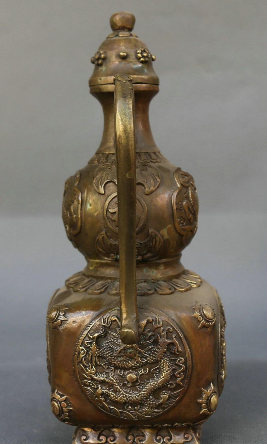 Antique Chinese Bronze Dragon Kylin Chi-lin Qilin Beast Wine Tea Pot Flagon.....Height 225MM .Long : 155MM . breadth : 85MM....Origin - China