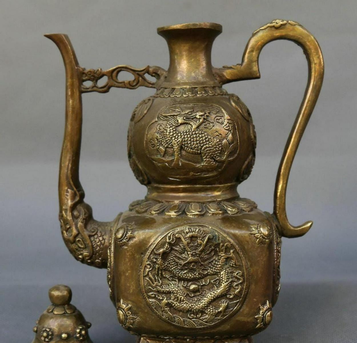 Antique Chinese Bronze Dragon Kylin Chi-lin Qilin Beast Wine Tea Pot Flagon.....Height 225MM .Long : 155MM . breadth : 85MM....Origin - China