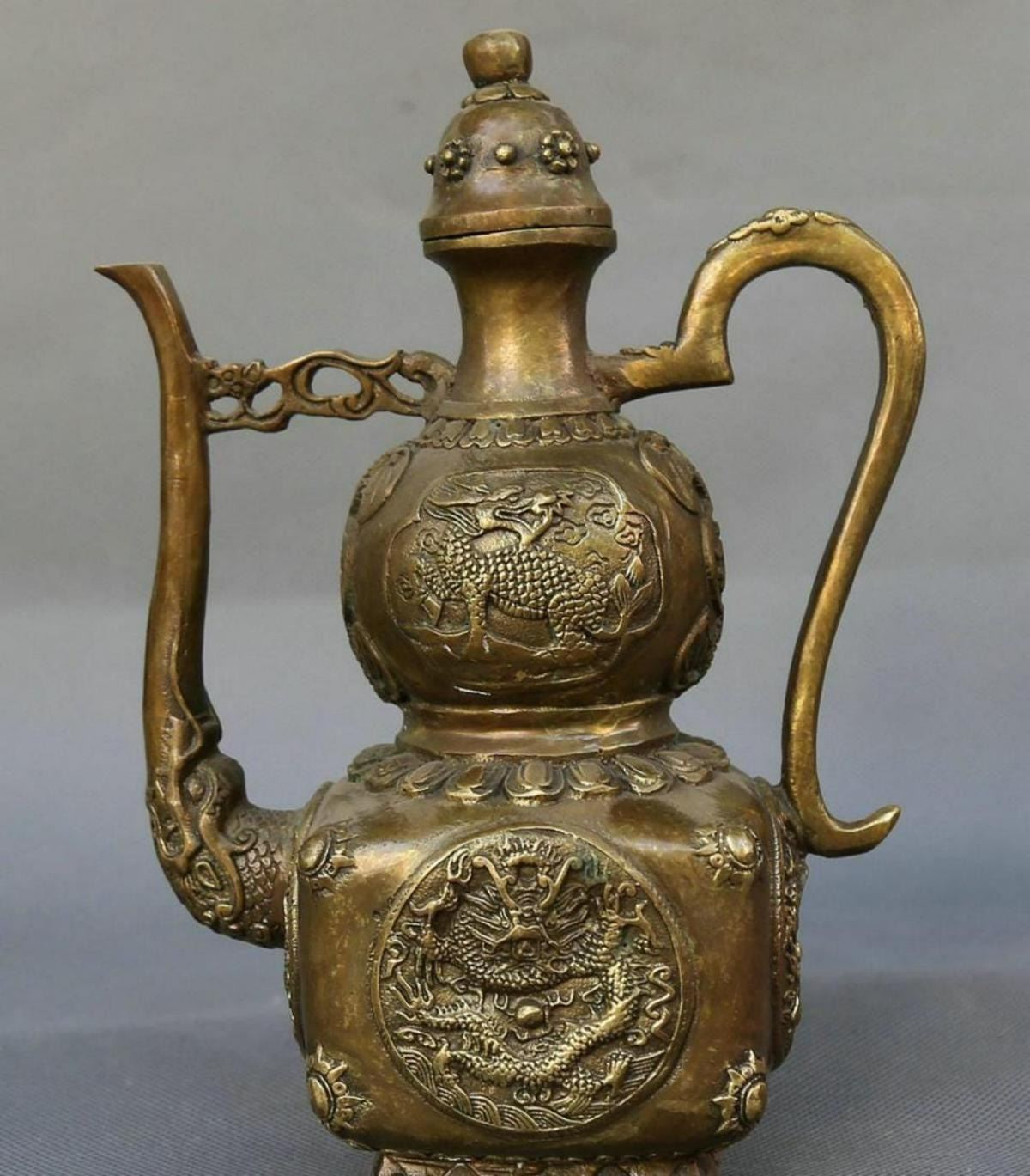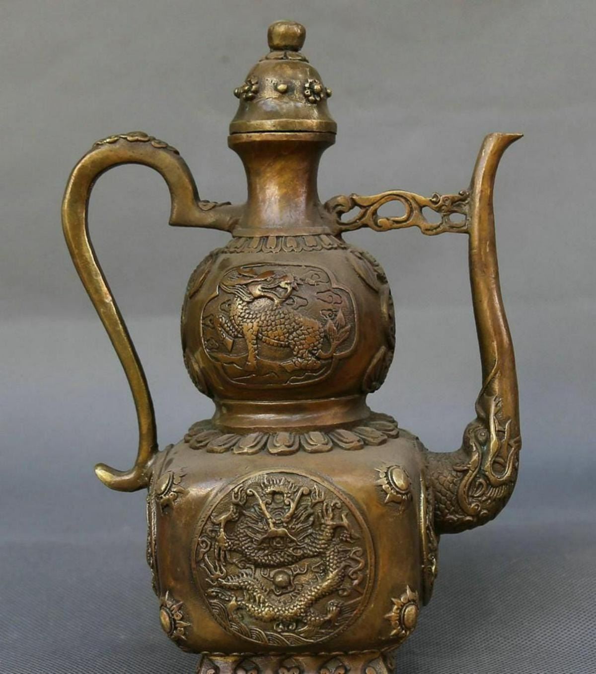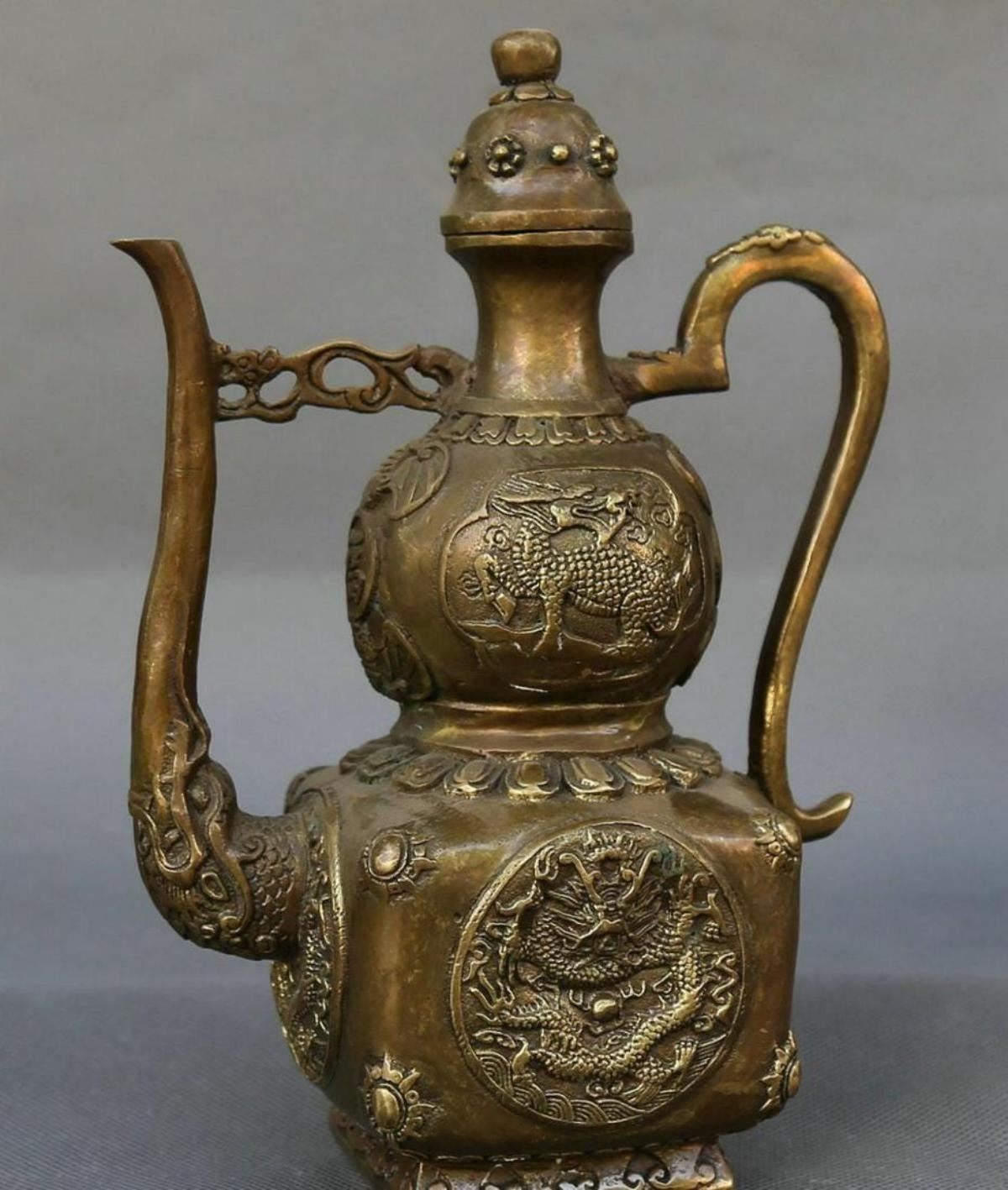 Antique Chinese Bronze Dragon Kylin Chi-lin Qilin Beast Wine Tea Pot Flagon.....Height 225MM .Long : 155MM . breadth : 85MM....Origin - China
