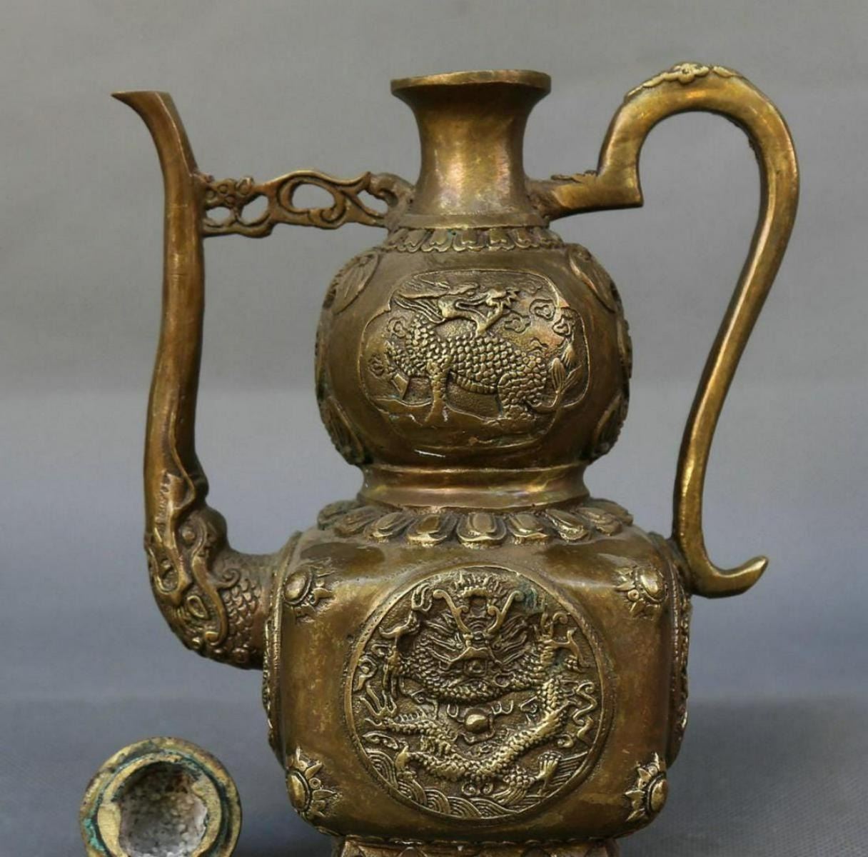 Antique Chinese Bronze Dragon Kylin Chi-lin Qilin Beast Wine Tea Pot Flagon.....Height 225MM .Long : 155MM . breadth : 85MM....Origin - China