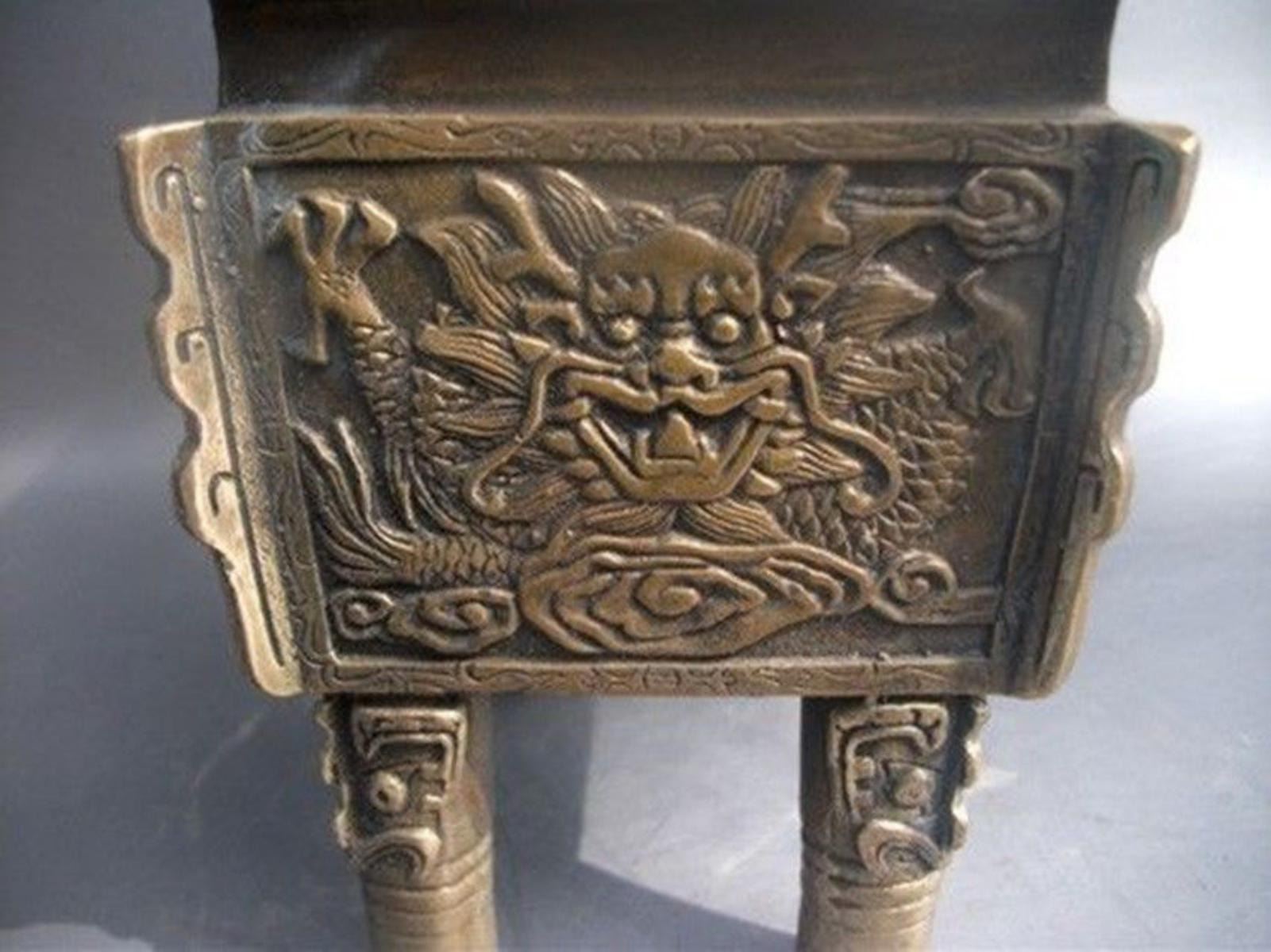 Antique Chinese Carved Bronze Dragon Incense Burner...Material: Copper / Bronze;size - 5.1 x 4.3 x 4.1 inch