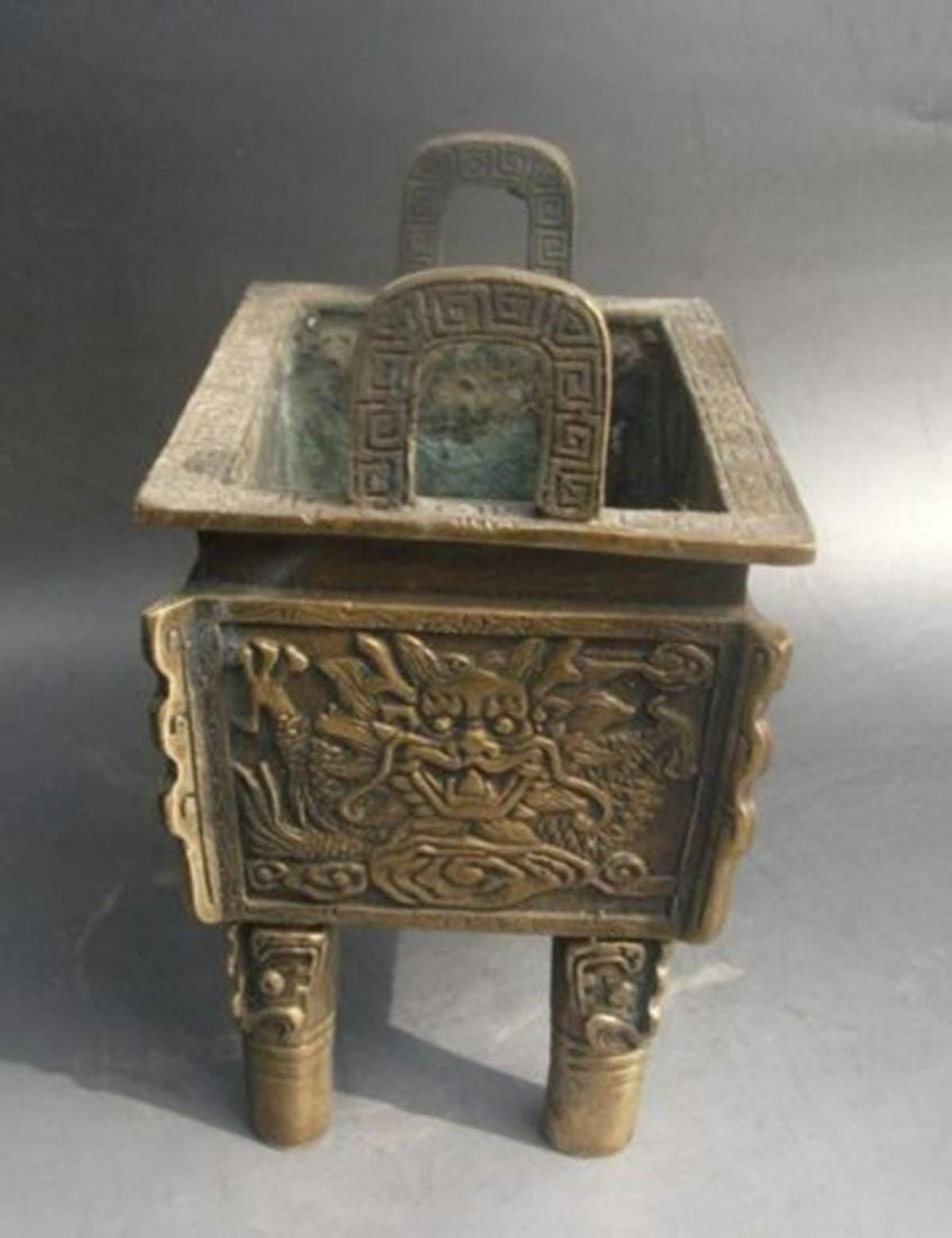 Antique Chinese Carved Bronze Dragon Incense Burner...Material: Copper / Bronze;size - 5.1 x 4.3 x 4.1 inch