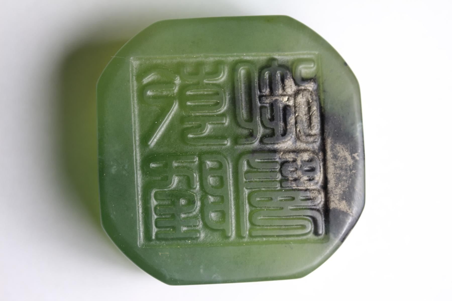 Antique Chinese Green Jade Seal...size 49x49x19 mm...origin China