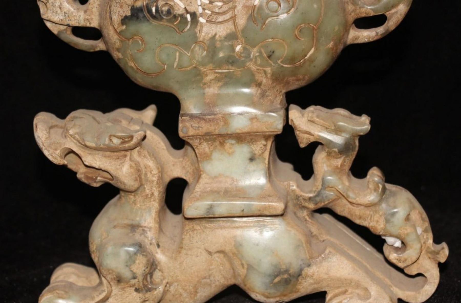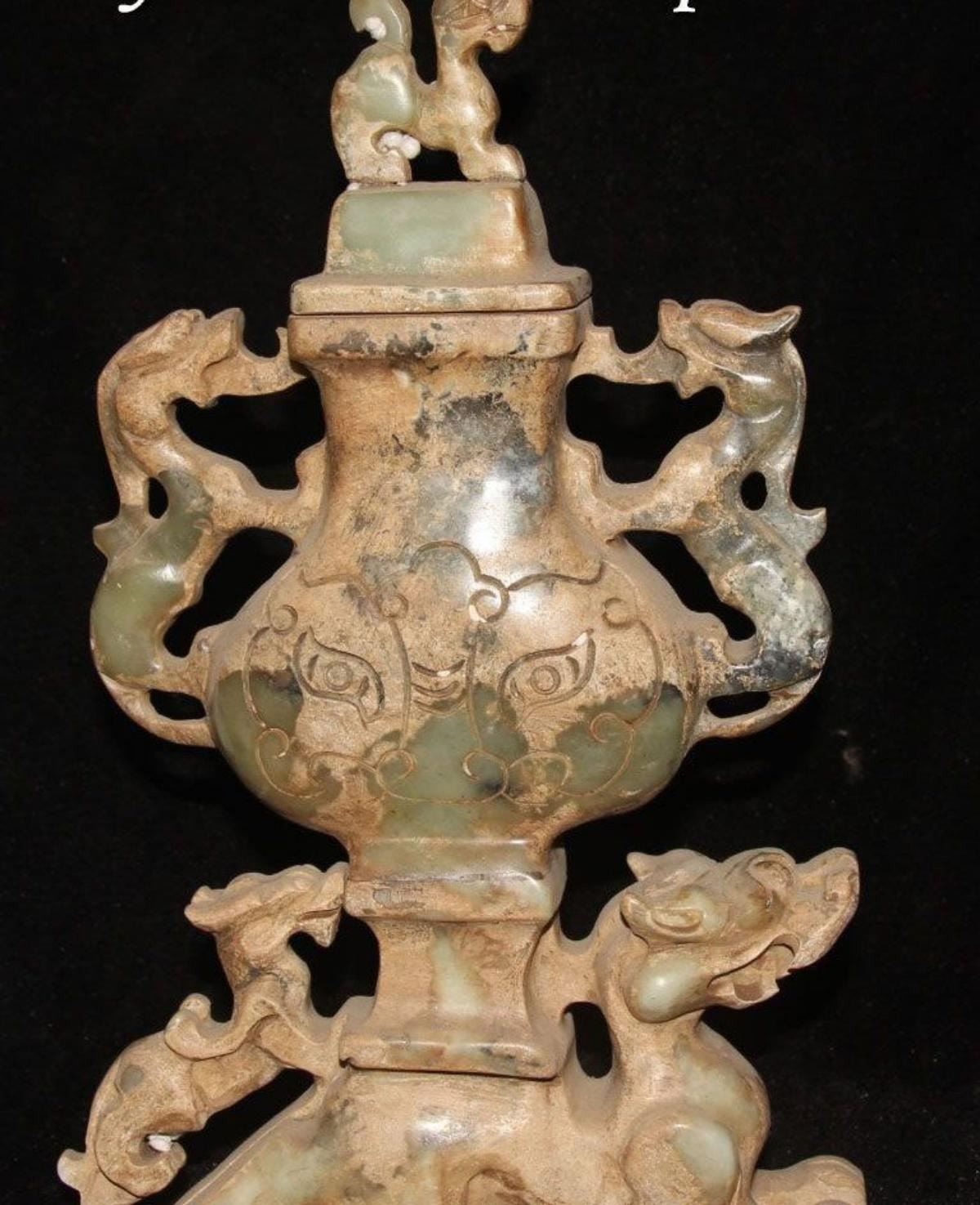 Antique Chinese Jade Carving Dragon Beast PiXiu Pot Jar.....Size: Height 11.4 inch ; This antique has been kept in very good condition. Its beauty for jade collectors.