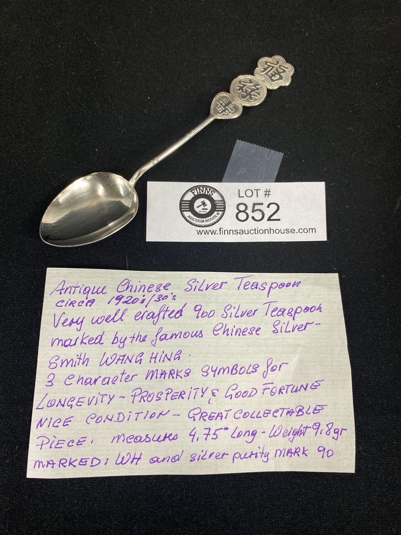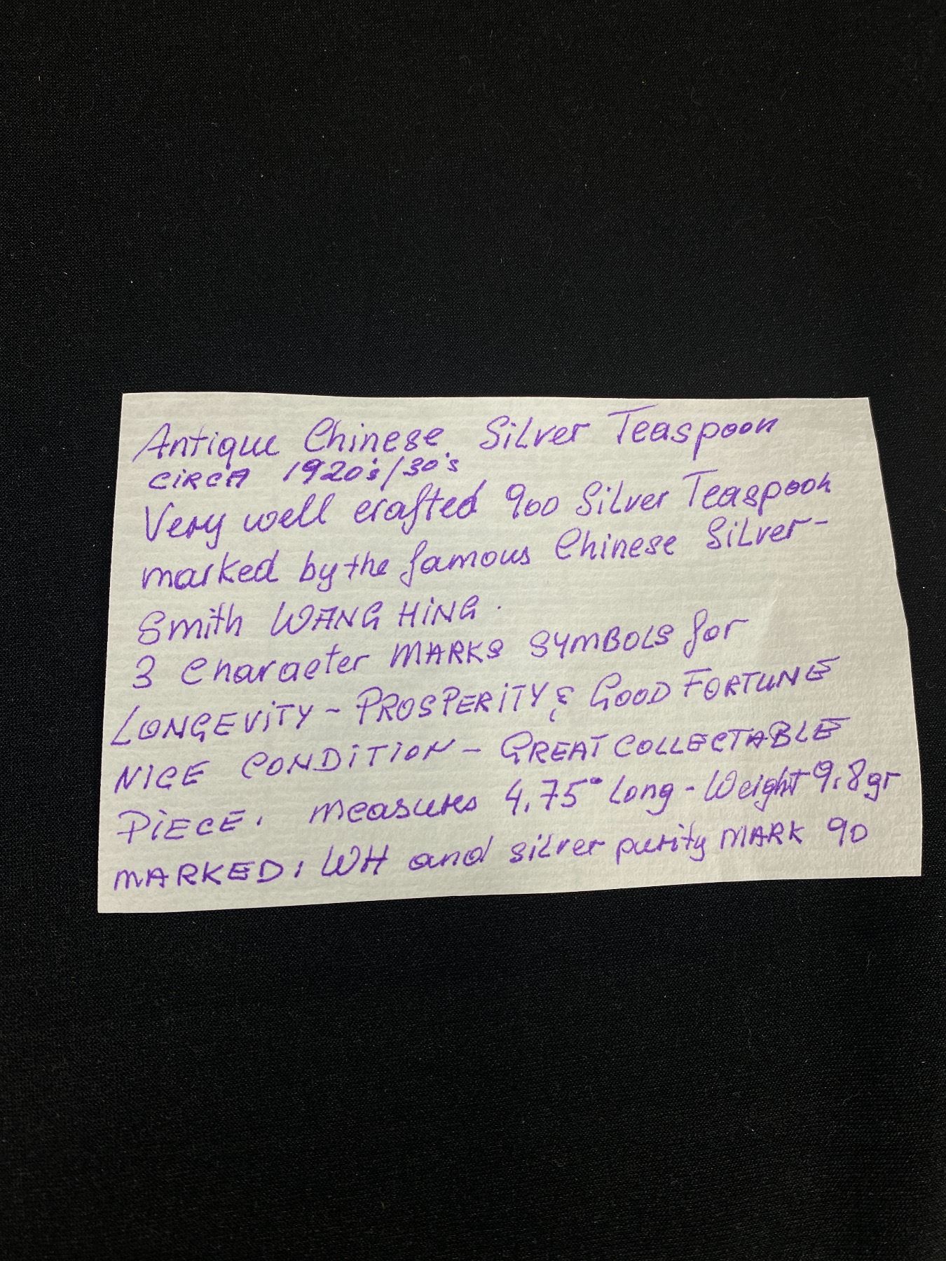 Antique Chinese Silver Teaspoon Circa 1920/30s 900 Silver Marked by Famous Chinese Silver Smith Wang Hing Great Collector Piece