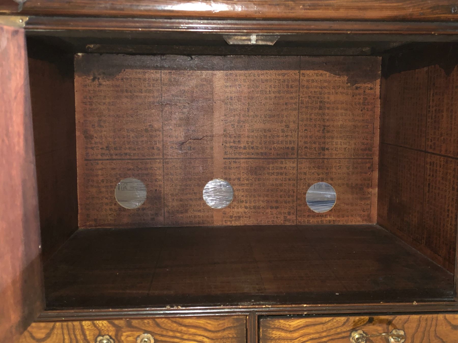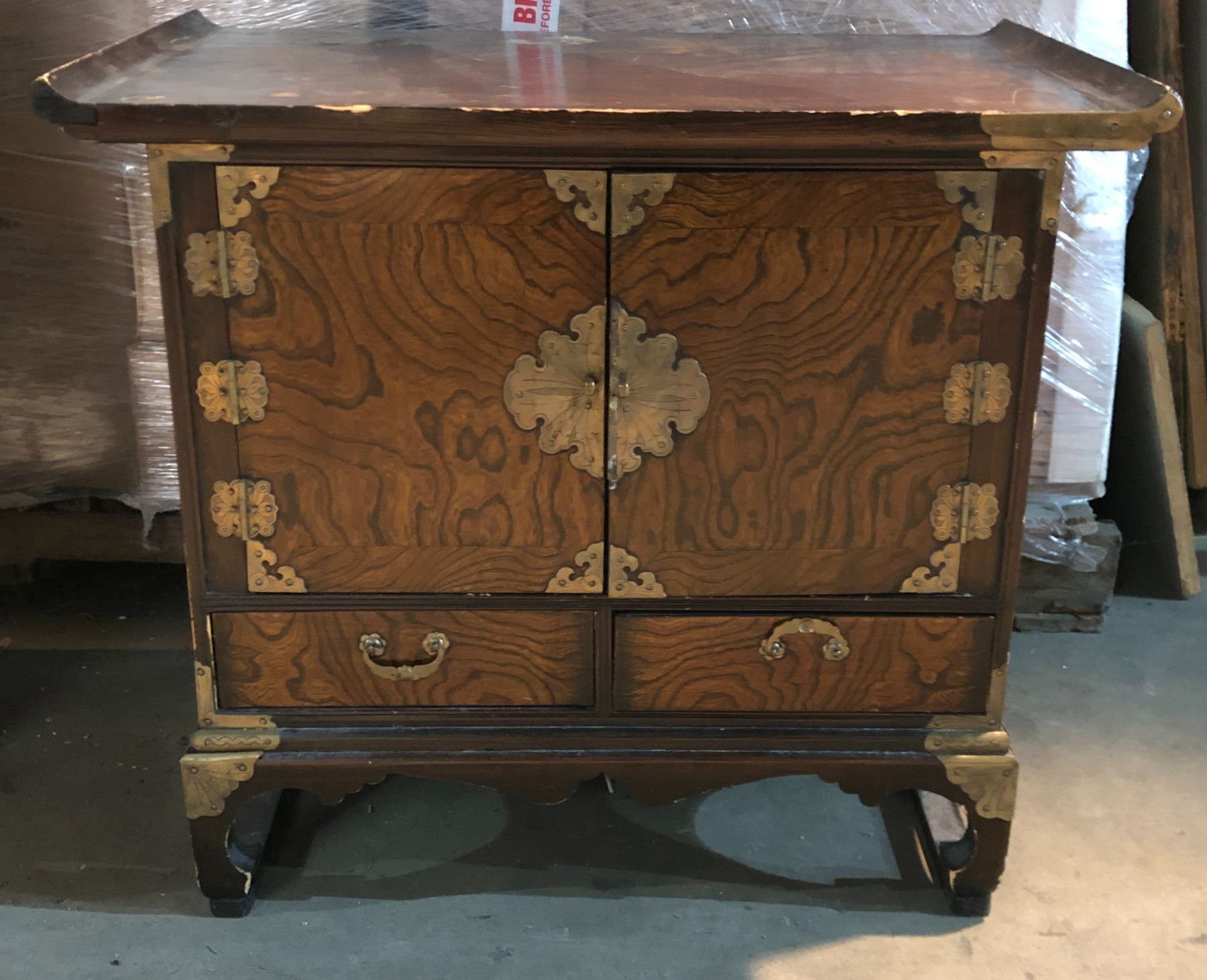 Antique Chinese console cabinet w/ butterfly hinges (approx 27" x W x 16" L x 23" H)