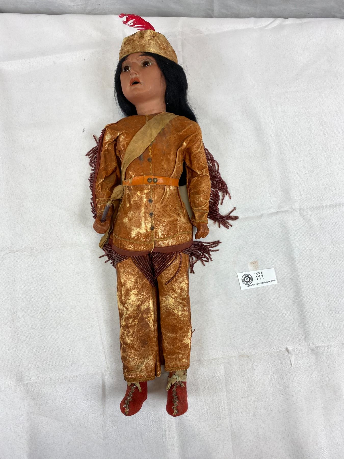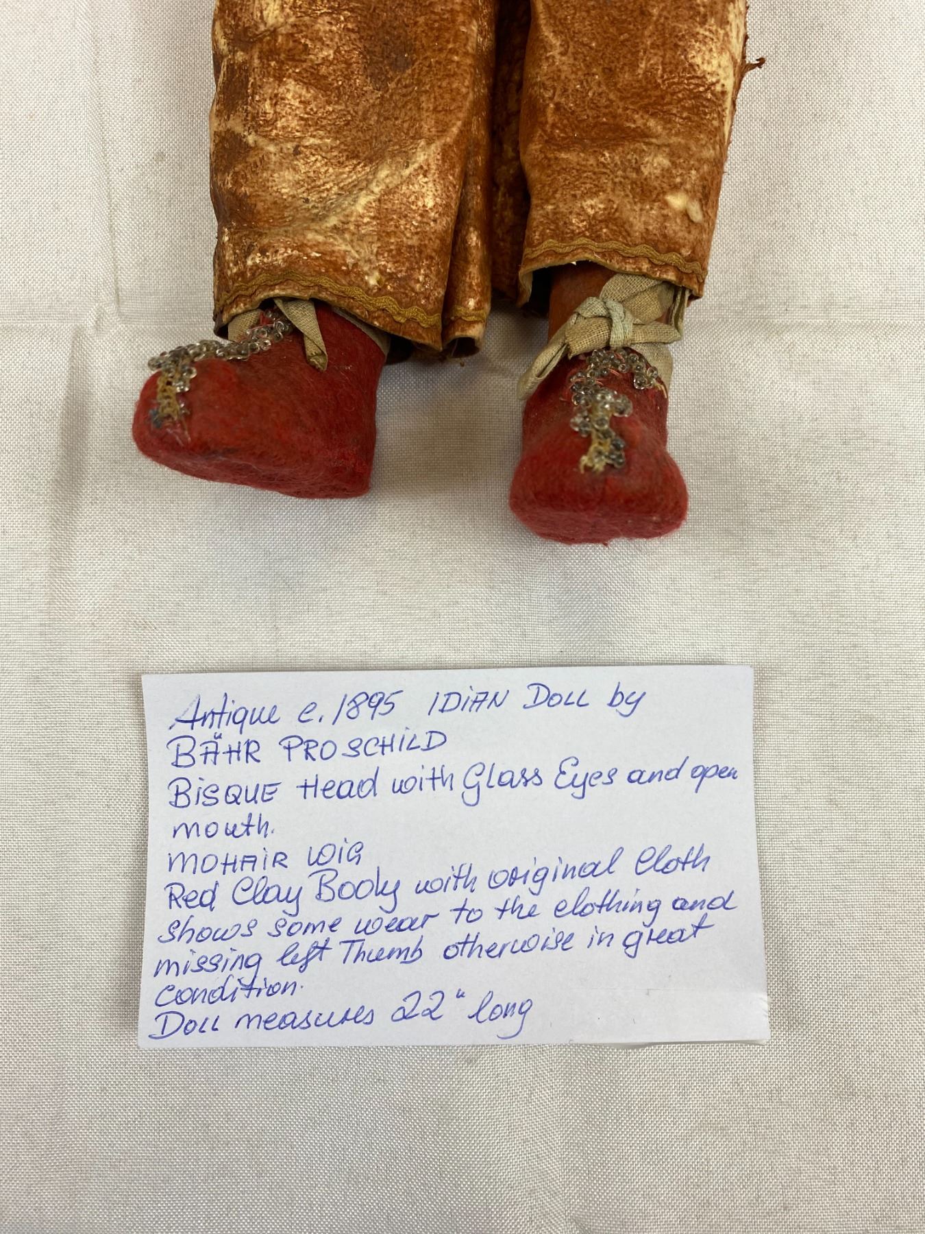 Antique Circa 1895 Indian Doll by Bahr Proschild. With Clay Body and Original Cloth Shoes.Missing Left Thumb