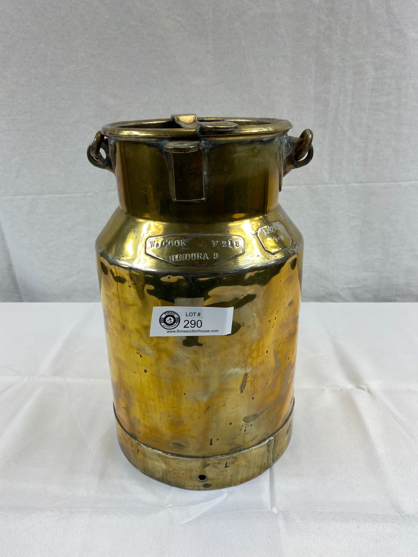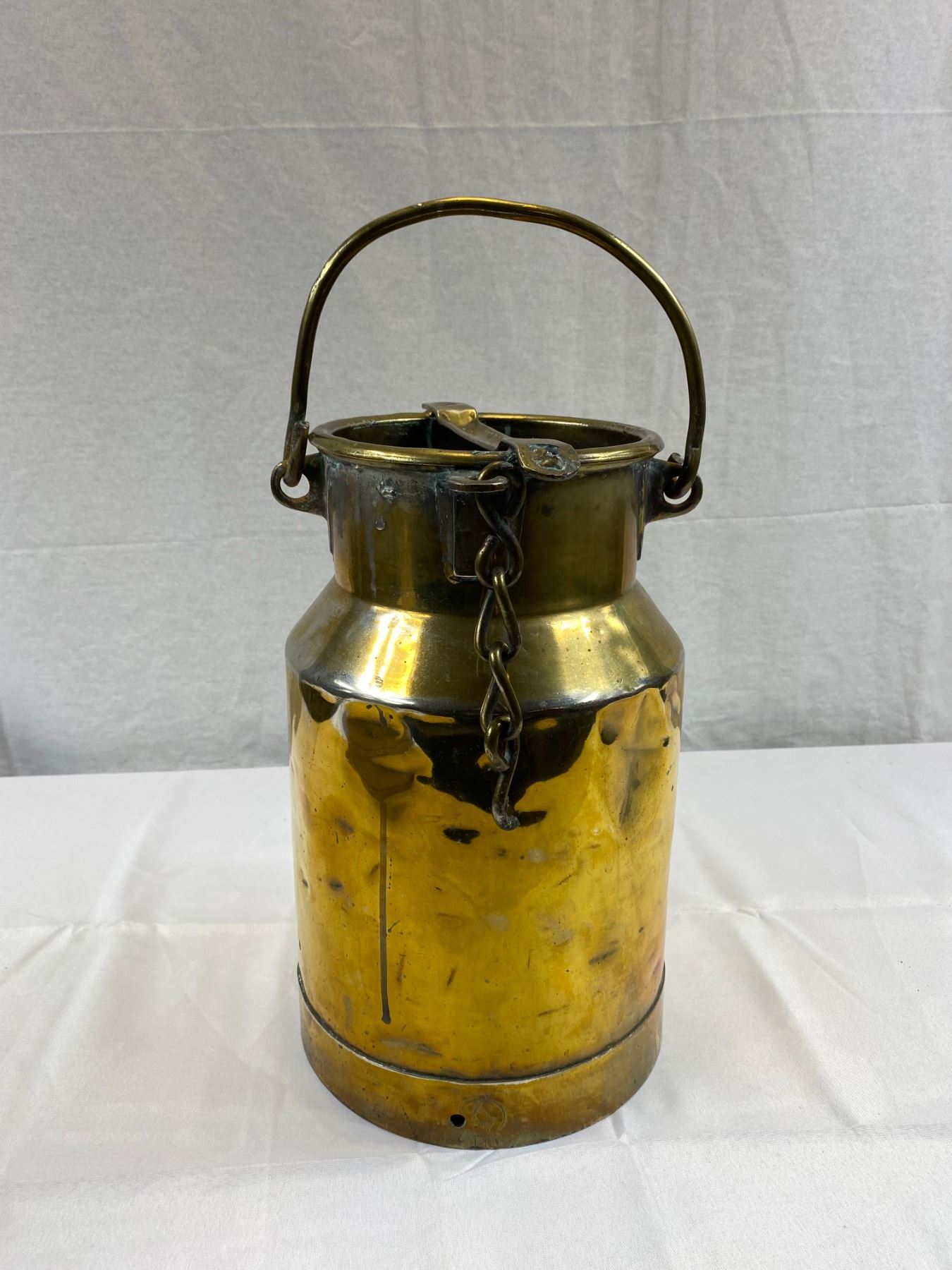 Antique Cream/Milk Brass Can, Stamped 13927-1 And Bindura 9 F218, 8.5"W x 14"T