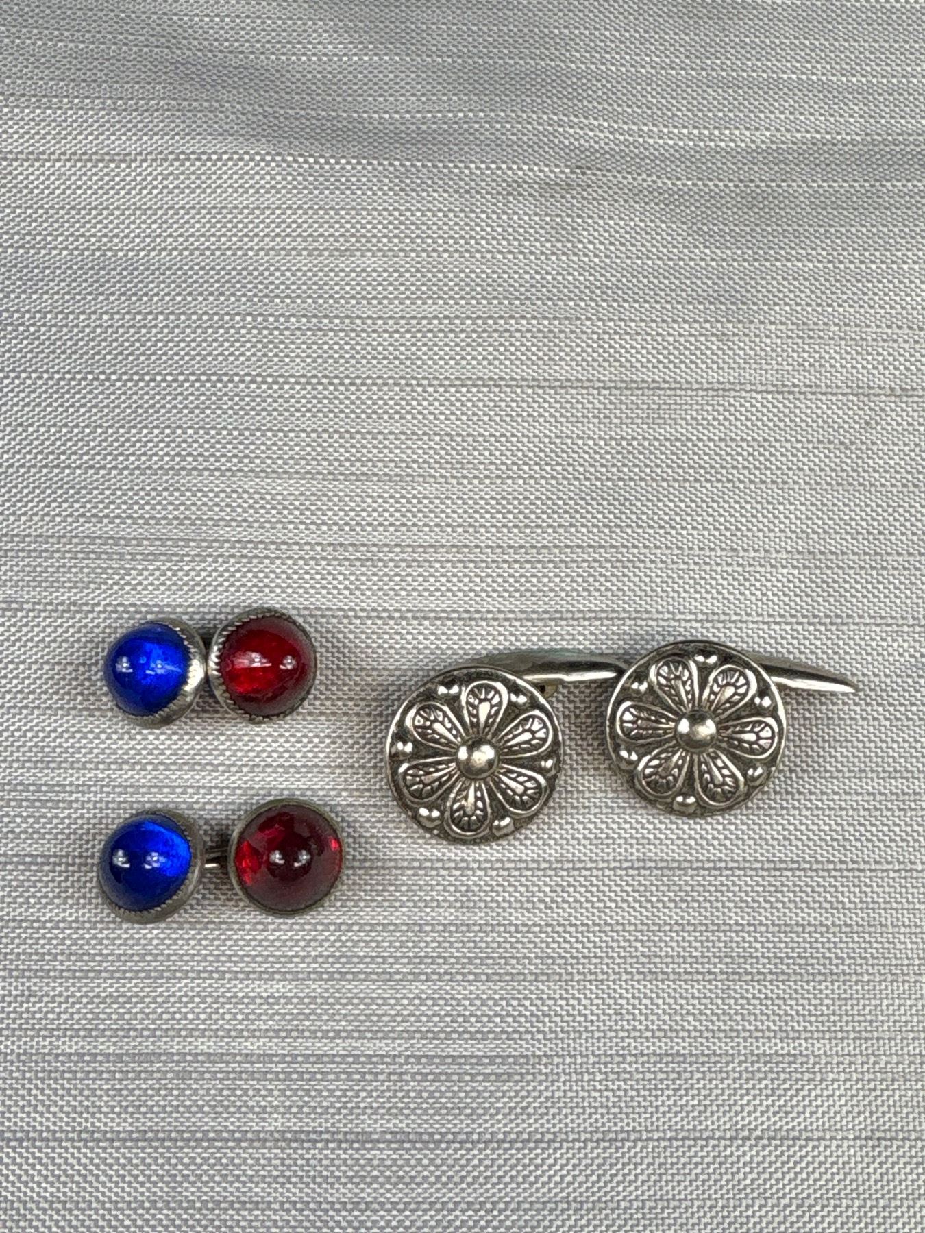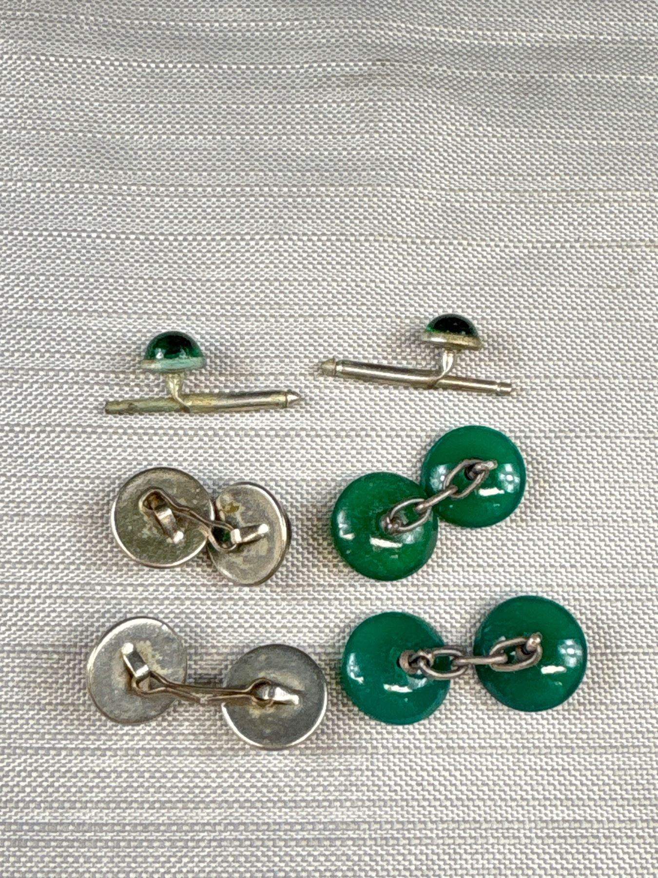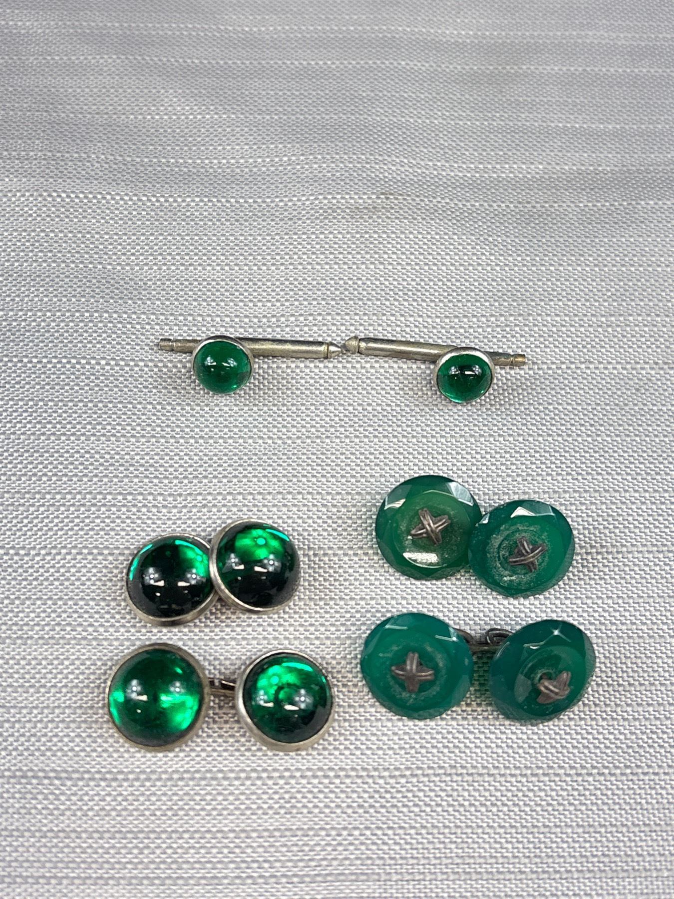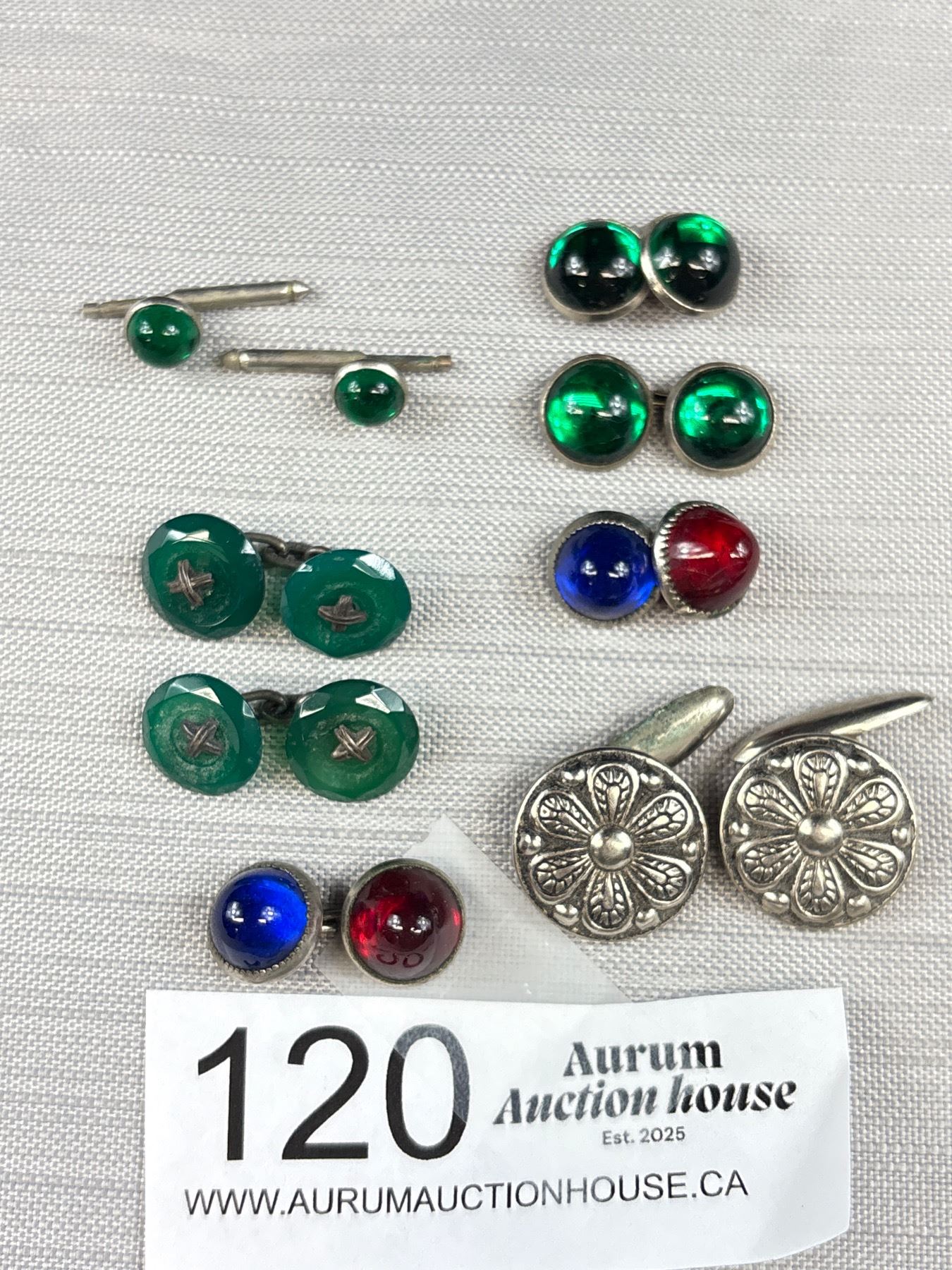 Antique Cufflink Lot Ruby Sapphire Emerald Cabachon + Silver Beauties!
