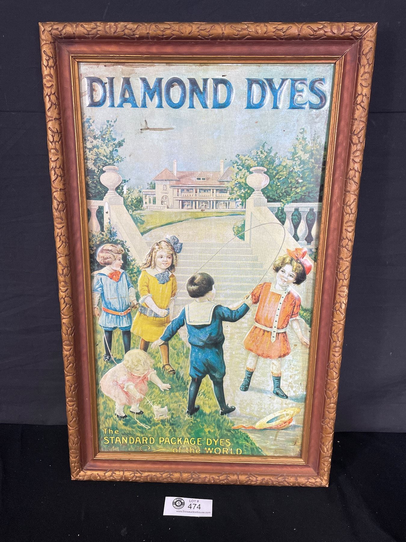 Antique Diamond Dyes Sign, Framed 14" x23"