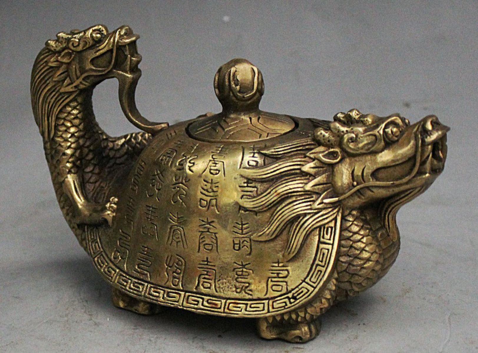 Antique Fengshui Brass Dragon Turtle Tortoise Wine Pot; size 6 inch long....Height 3.8 Inches....Width 3.2 Inches...Origin - China