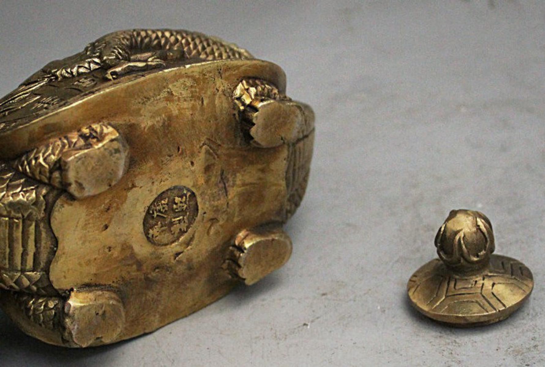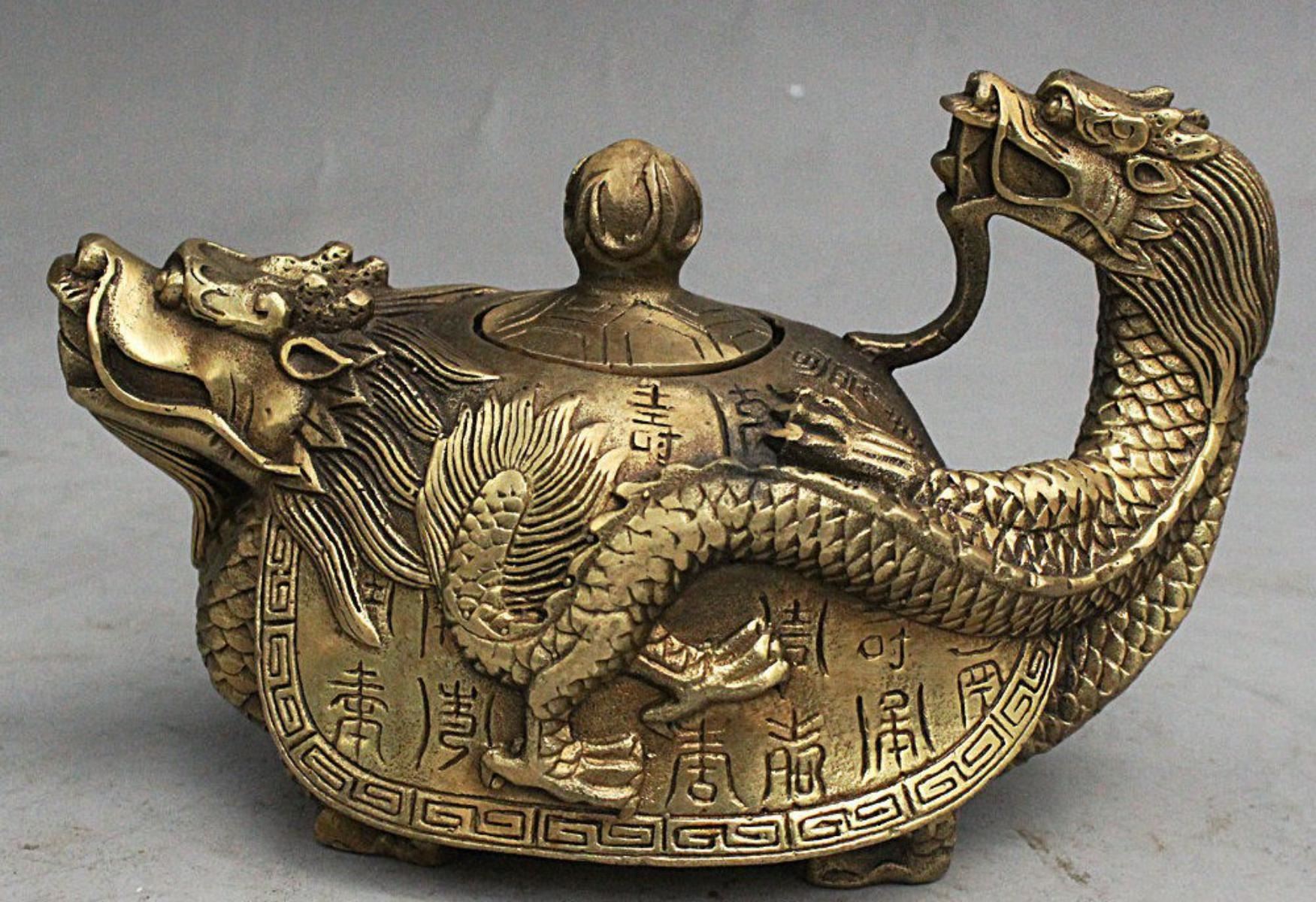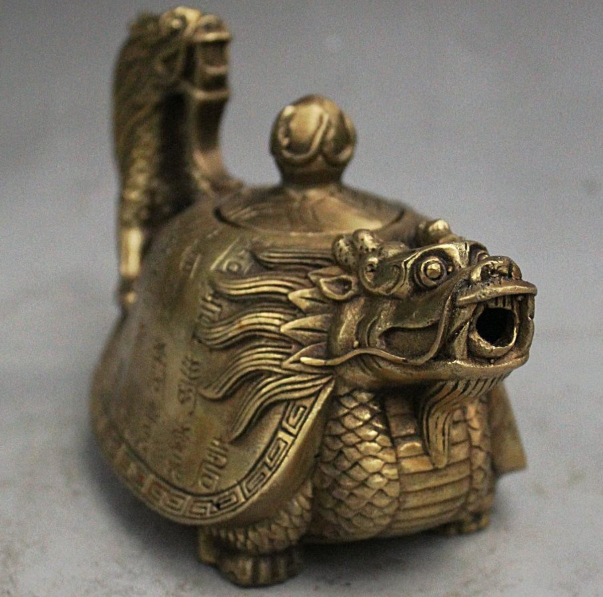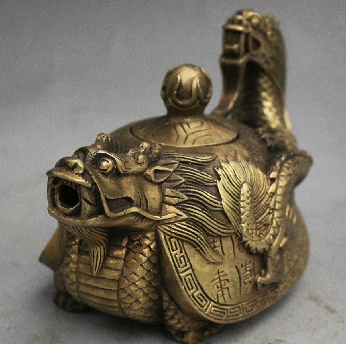 Antique Fengshui Brass Dragon Turtle Tortoise Wine Pot; size 6 inch long....Height 3.8 Inches....Width 3.2 Inches...Origin - China