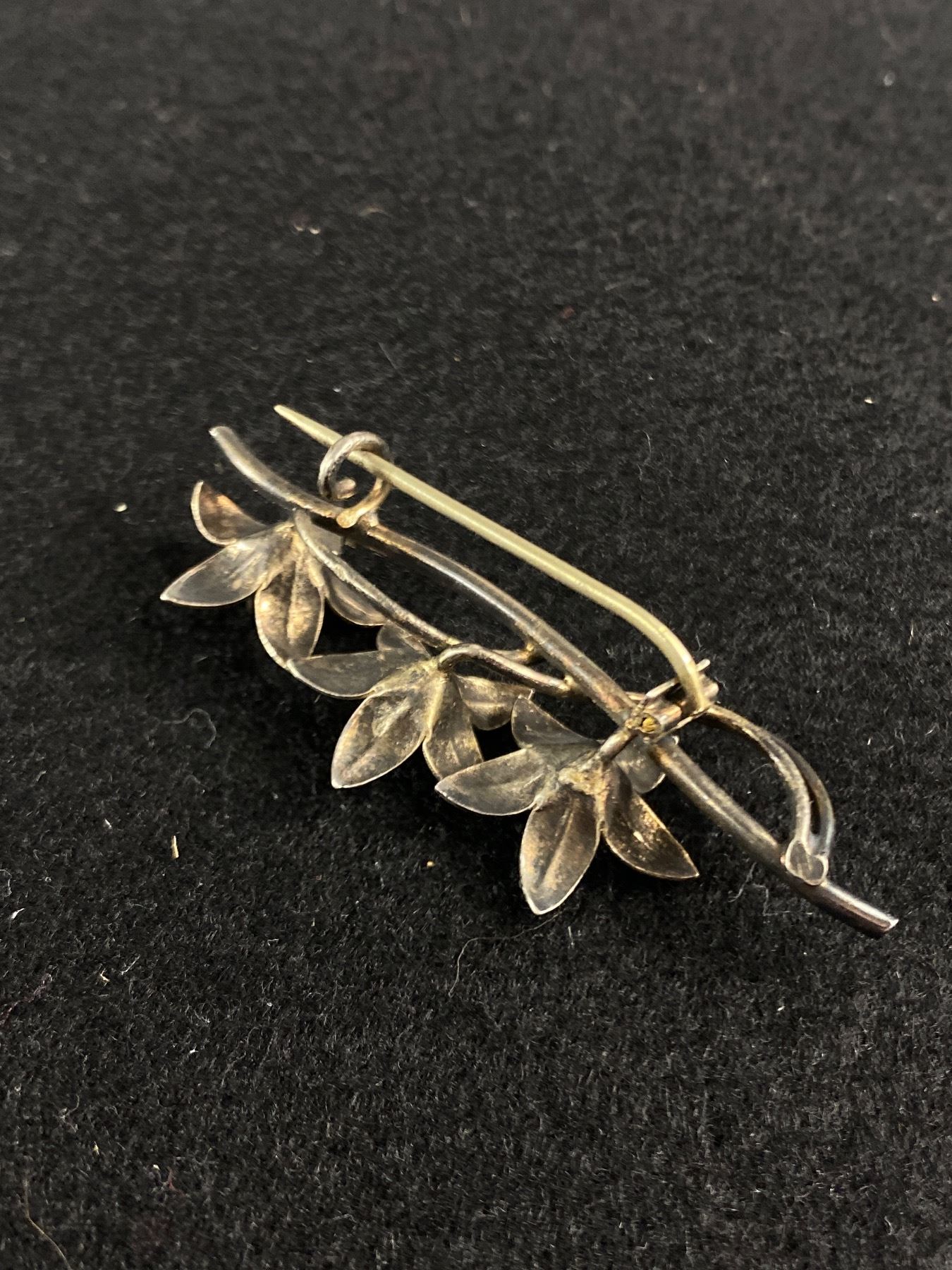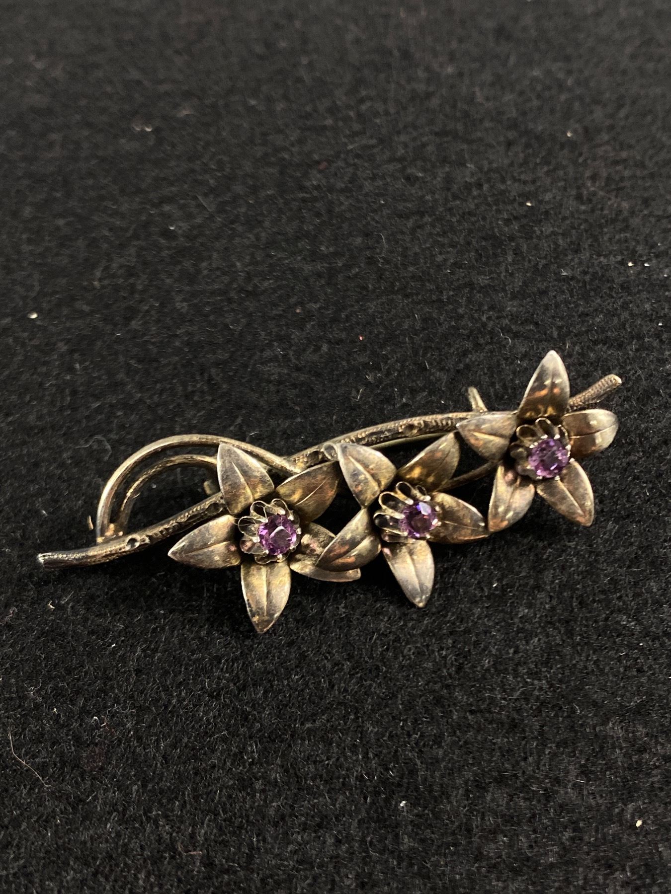 Antique Floral Brooch w/3 Set Amethyst Stones
