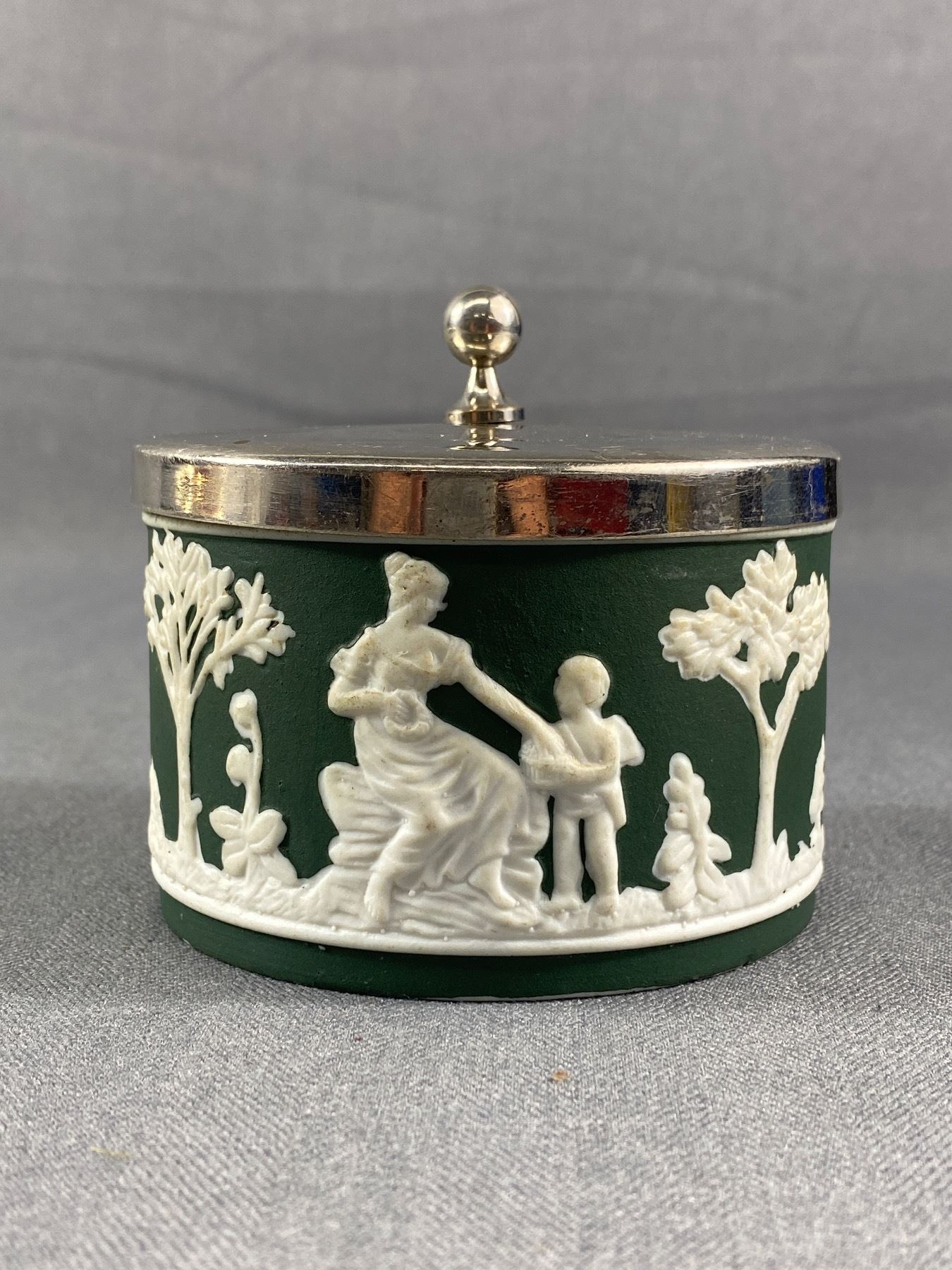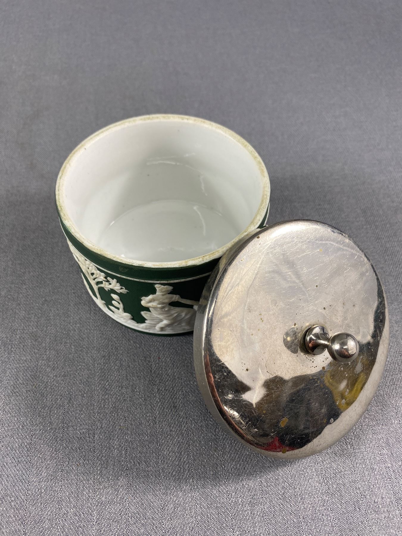Antique Green Jasperware Trinket Box - Goddess & Cherub Scene