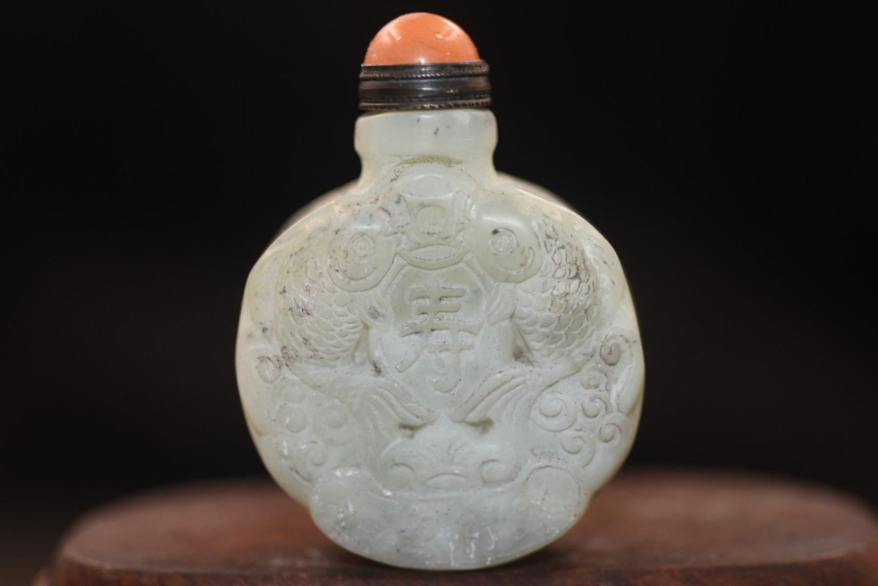 antique Hand carved Fish 2.6 Inch Jade snuff bottle