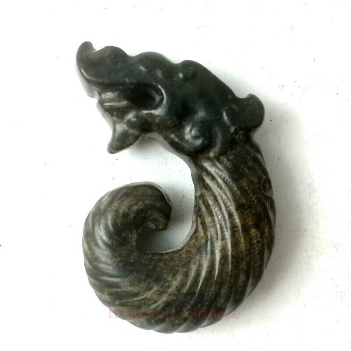 Antique Hongshan Culture Black Jade Dragon Pendant..........Rare Carving......Weight:53 g ; Height:57 mm Width: 40mm Thickness: 16mm;