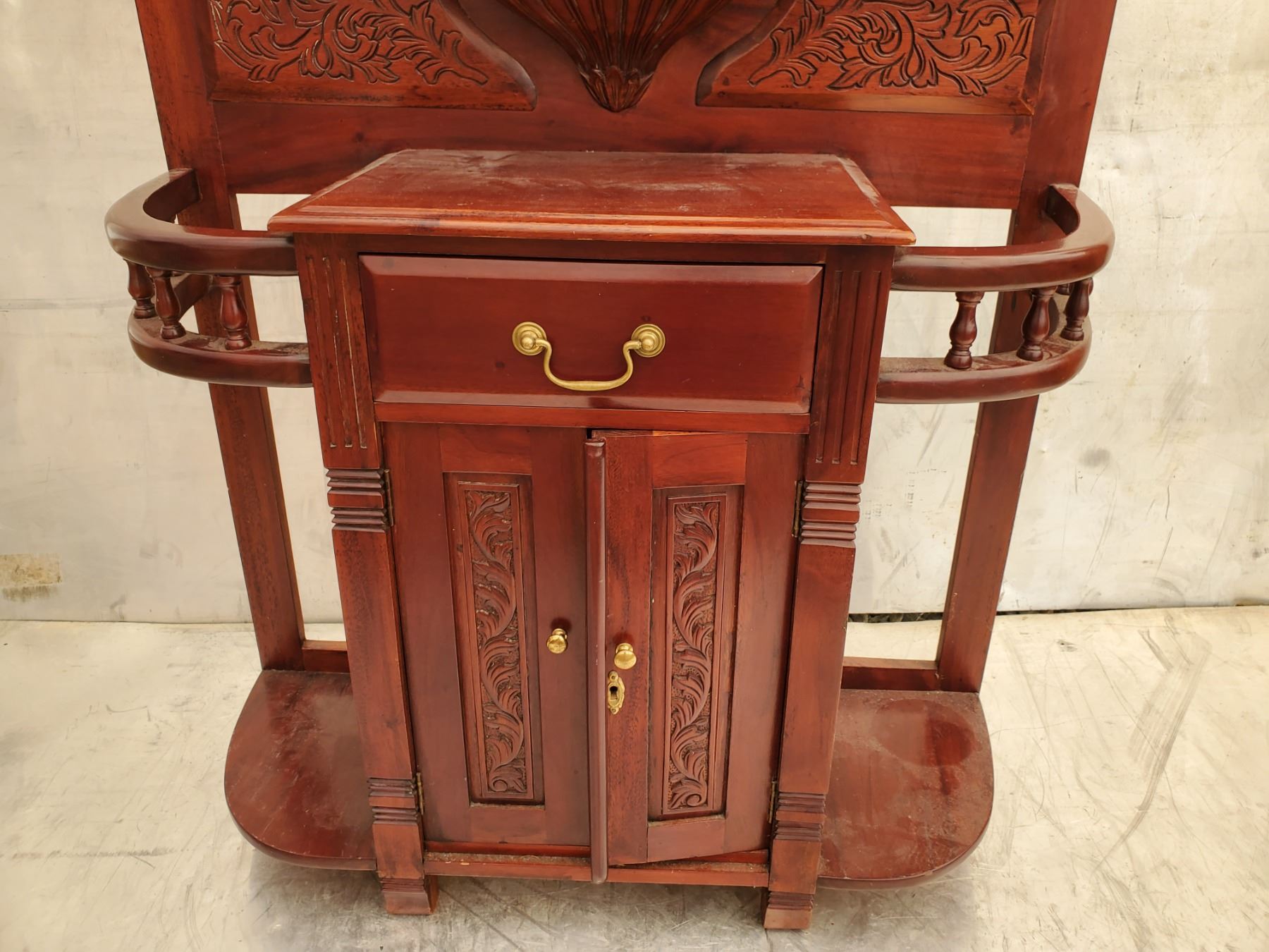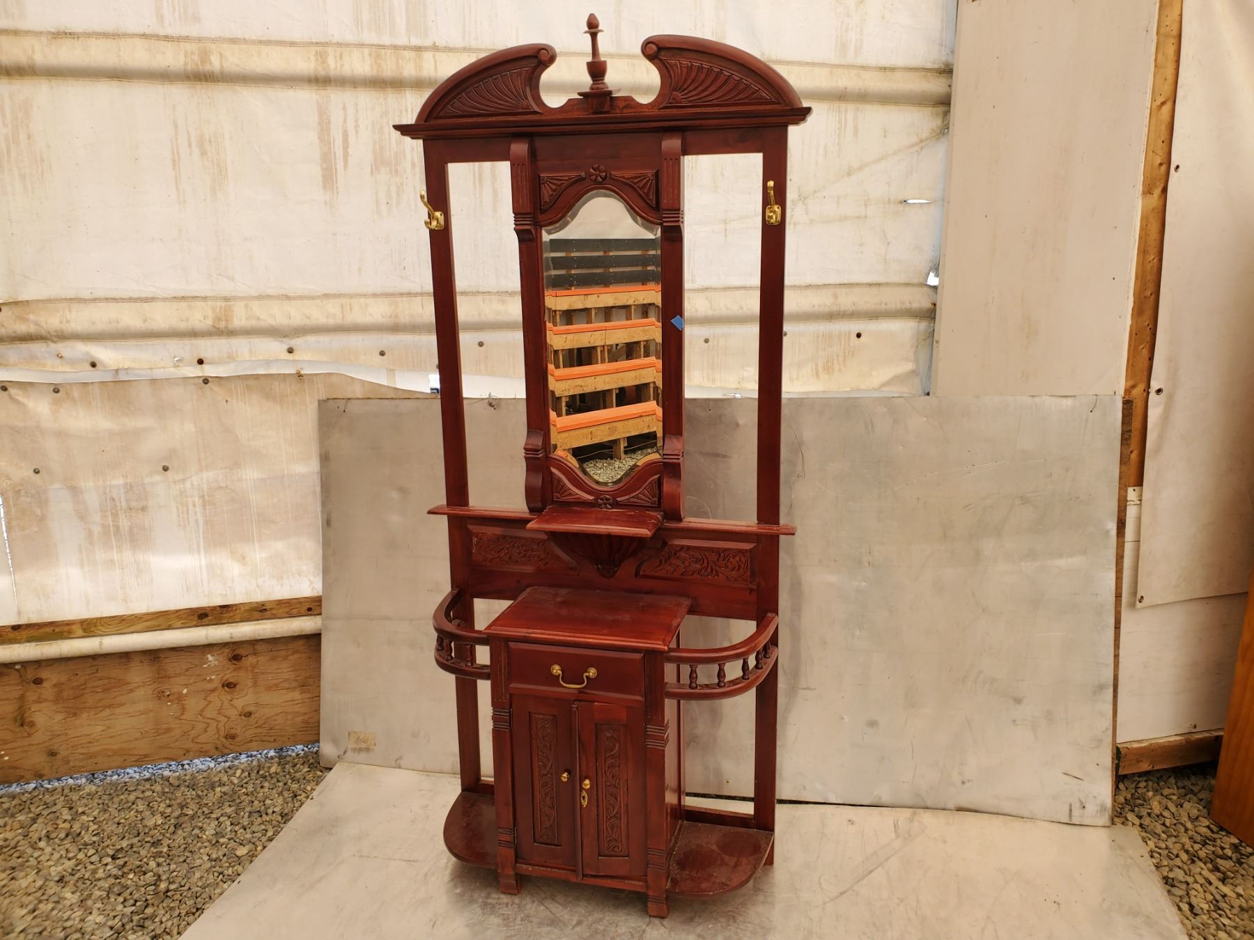 Antique Mahogany Hall Tree - Items have not been tested - Viewing Recommended- 17% Buyer Fee. Payment Processed through Live Auction World ( Visa or Master Card ) pick up Saturday or Tuesday