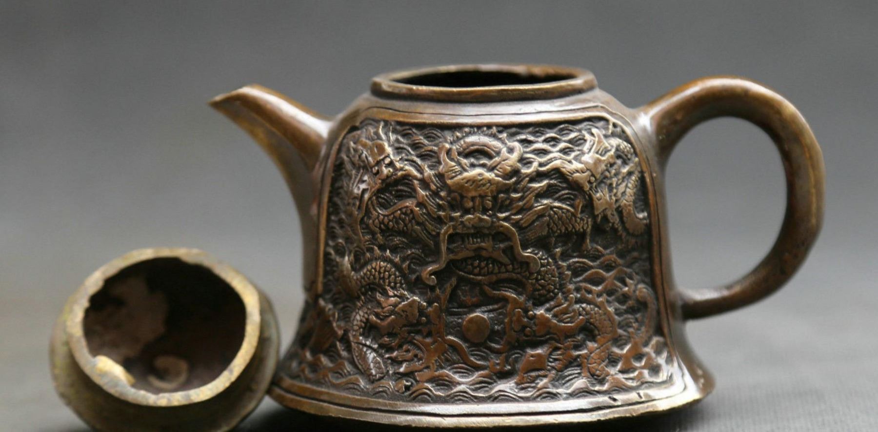 Antique Marked Chinese Bronze Dynasty Dragons Kettle; Description Size: Length : 11.0 cm / Width: 9.5cm / Thickness : 8.5 cm/ 1 inch= 2.54 cm material: Bronze weight :344 g