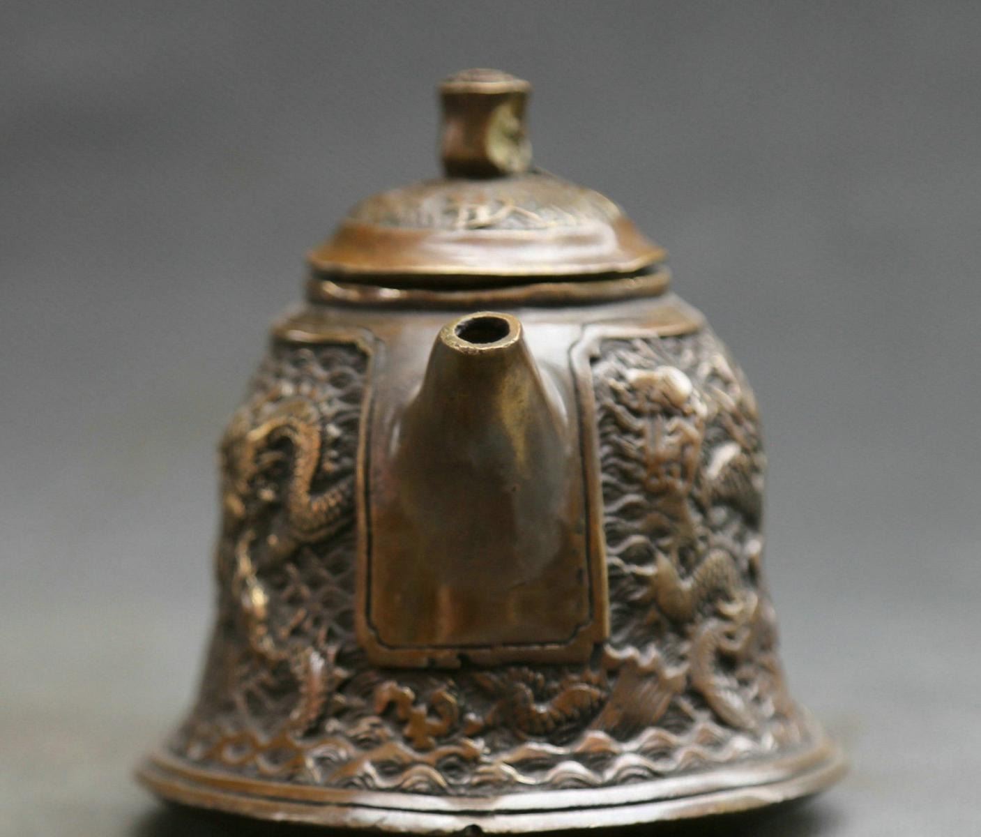 Antique Marked Chinese Bronze Dynasty Dragons Kettle; Description Size: Length : 11.0 cm / Width: 9.5cm / Thickness : 8.5 cm/ 1 inch= 2.54 cm material: Bronze weight :344 g