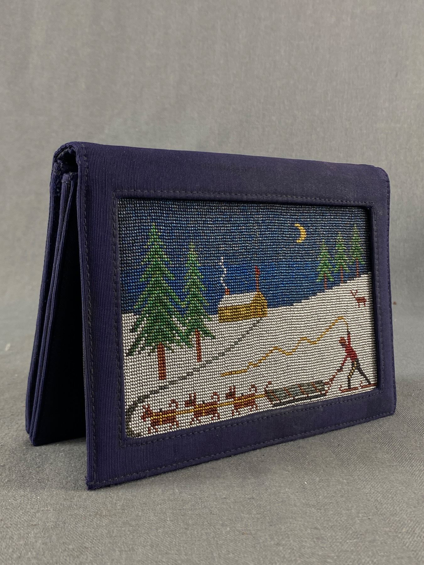 Antique Micro Beaded Clutch Beautiful Winter Dog Sled Scene