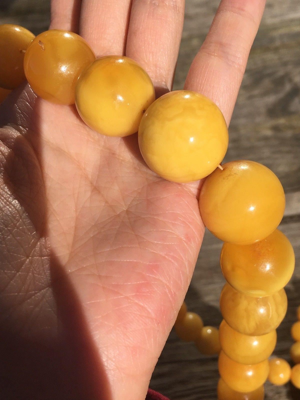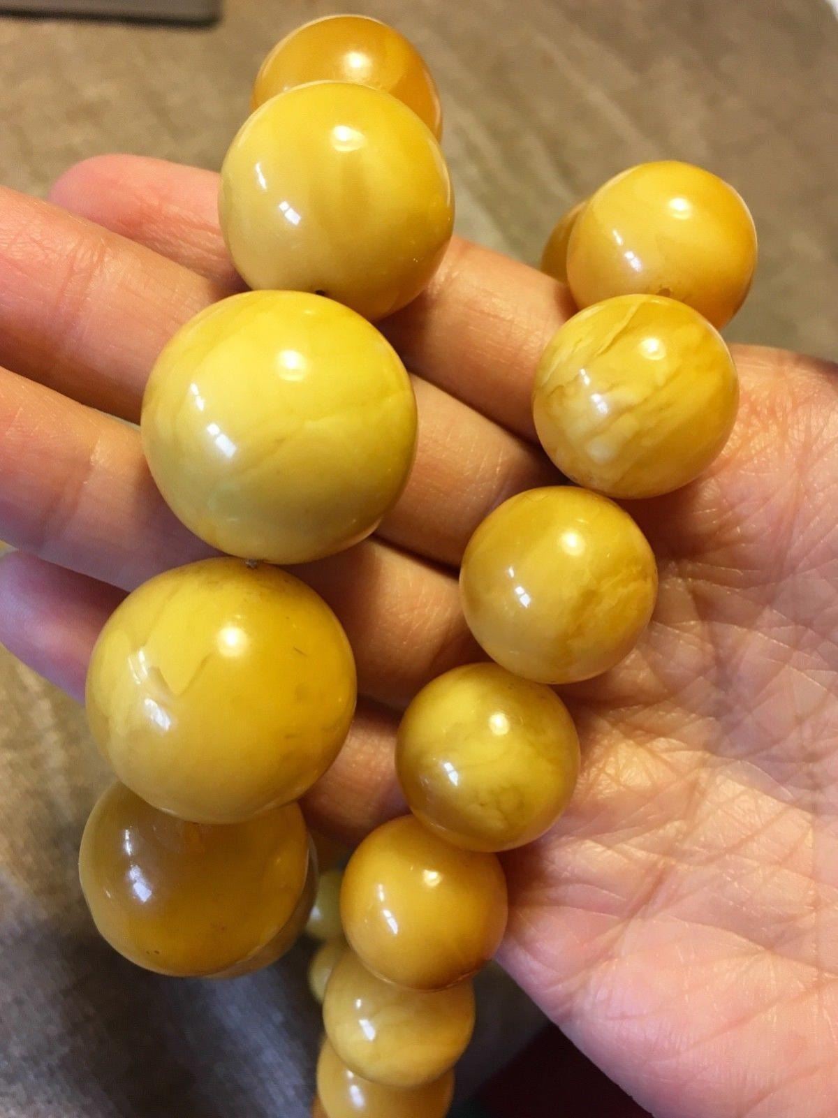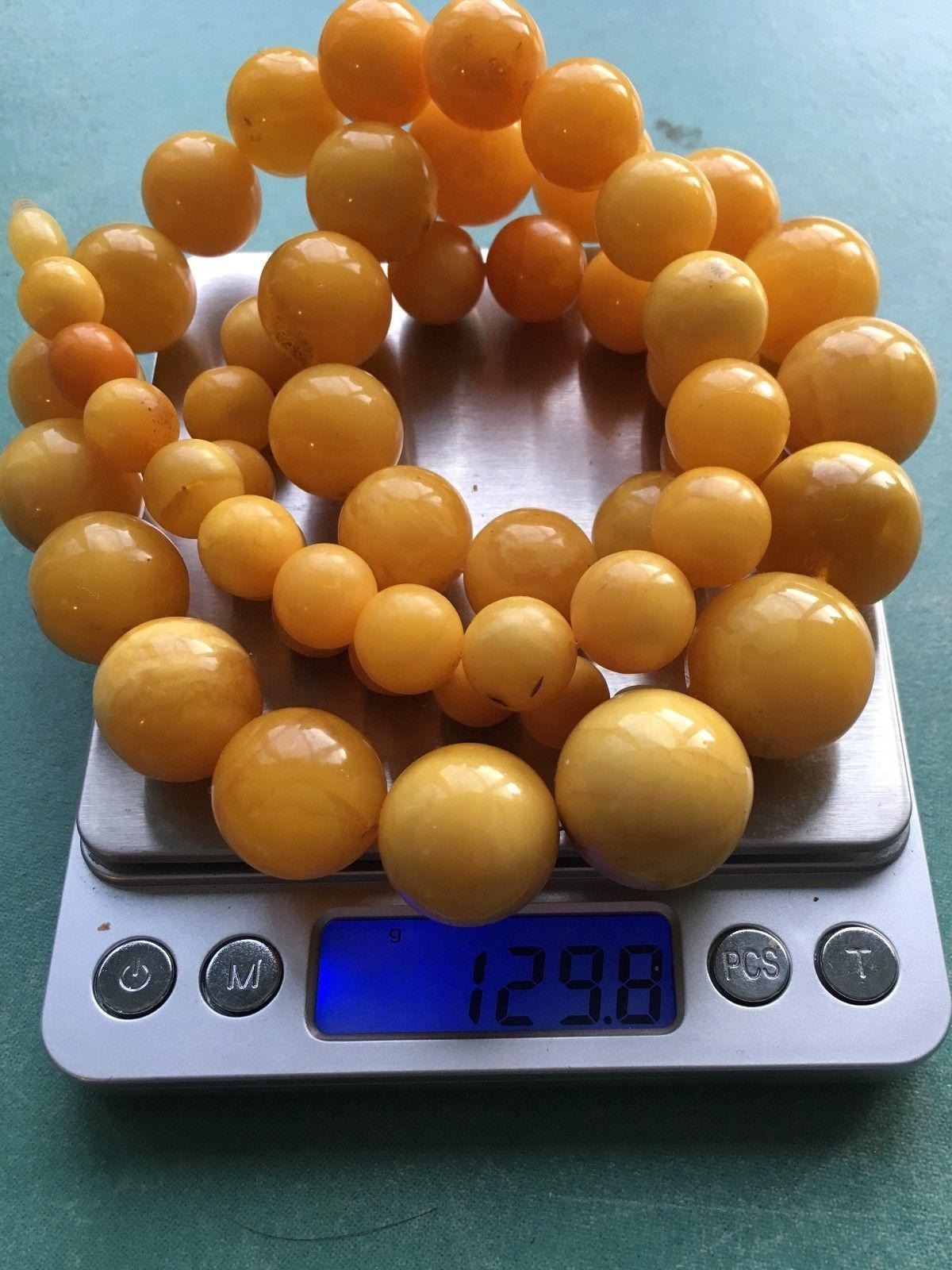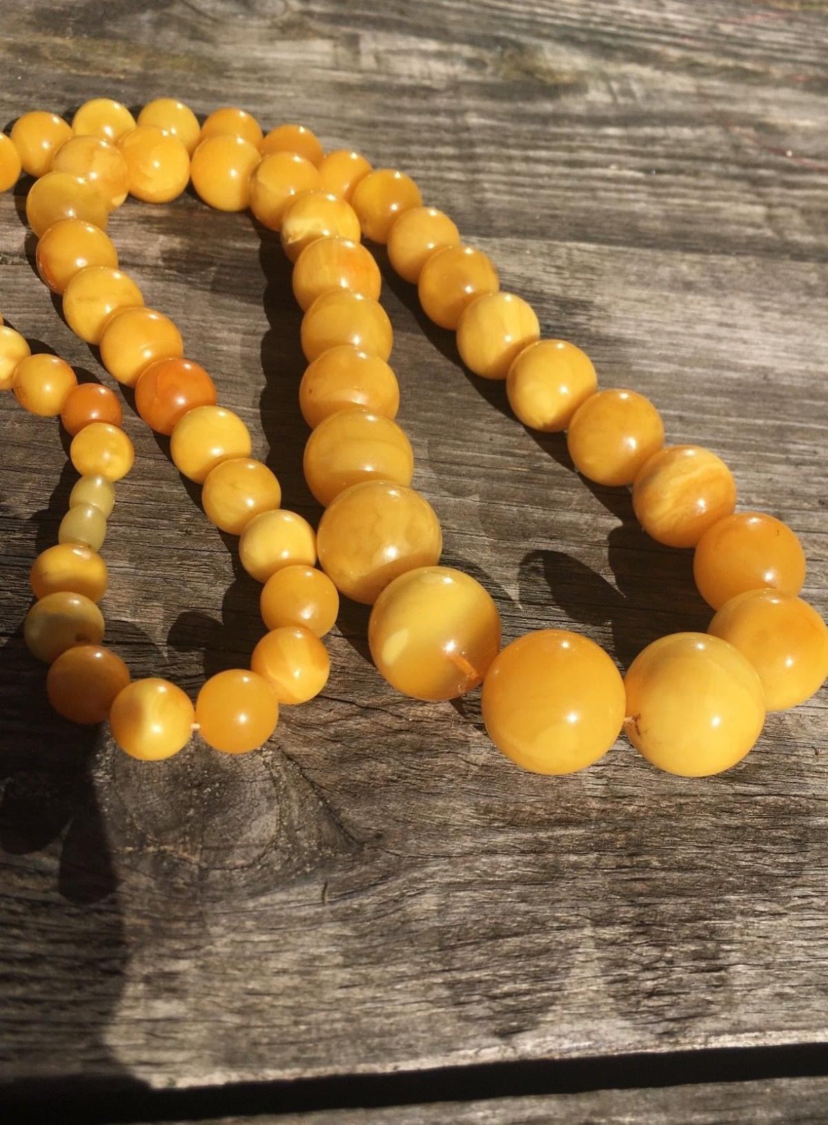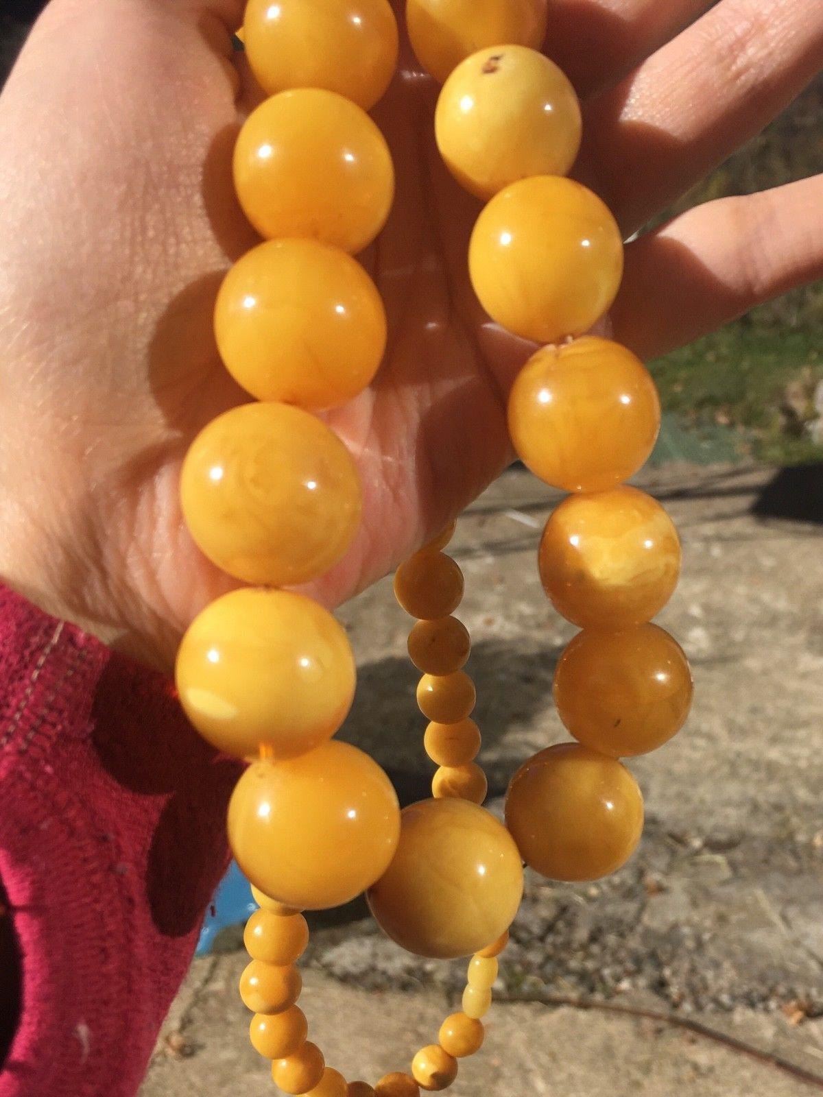 Antique natural Baltic Amber necklace. 100% natural Amber, not treated or pressed. Made by Koenigsberg German Technology. Weights: 129.80 grams. Length 83 cm. Beads from 10mm-22mm.