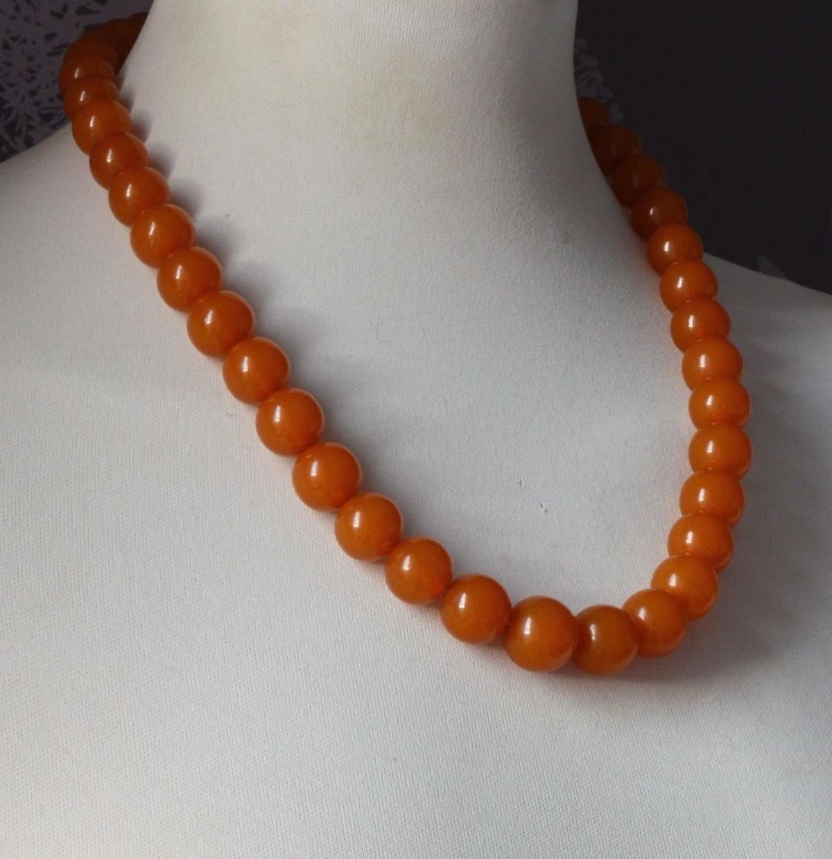 Antique Natural Amber Necklace.........Weight: 55,7 gramsColor: Egg YolkLenght: 10 inch= 25 cm (Total lenght: 20 inch).Bottam/ Middle bead 17 MM ..then 10 MM then ..Gradually smaller beads going towards back..Origin - Lithunia