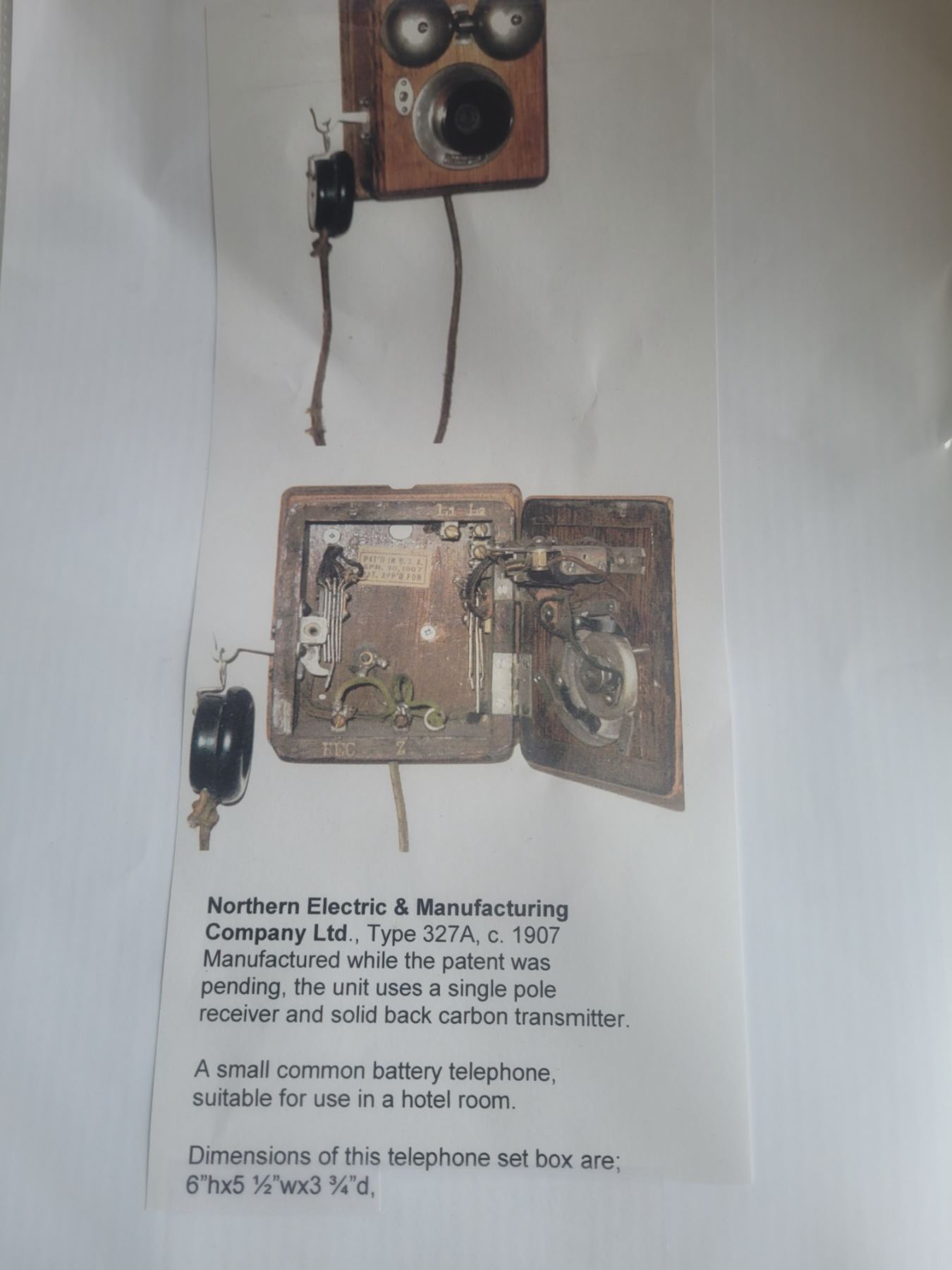 Type 327A c 1907 Small common battery phone suitable for use in a hotel room. Pickup at 9 am