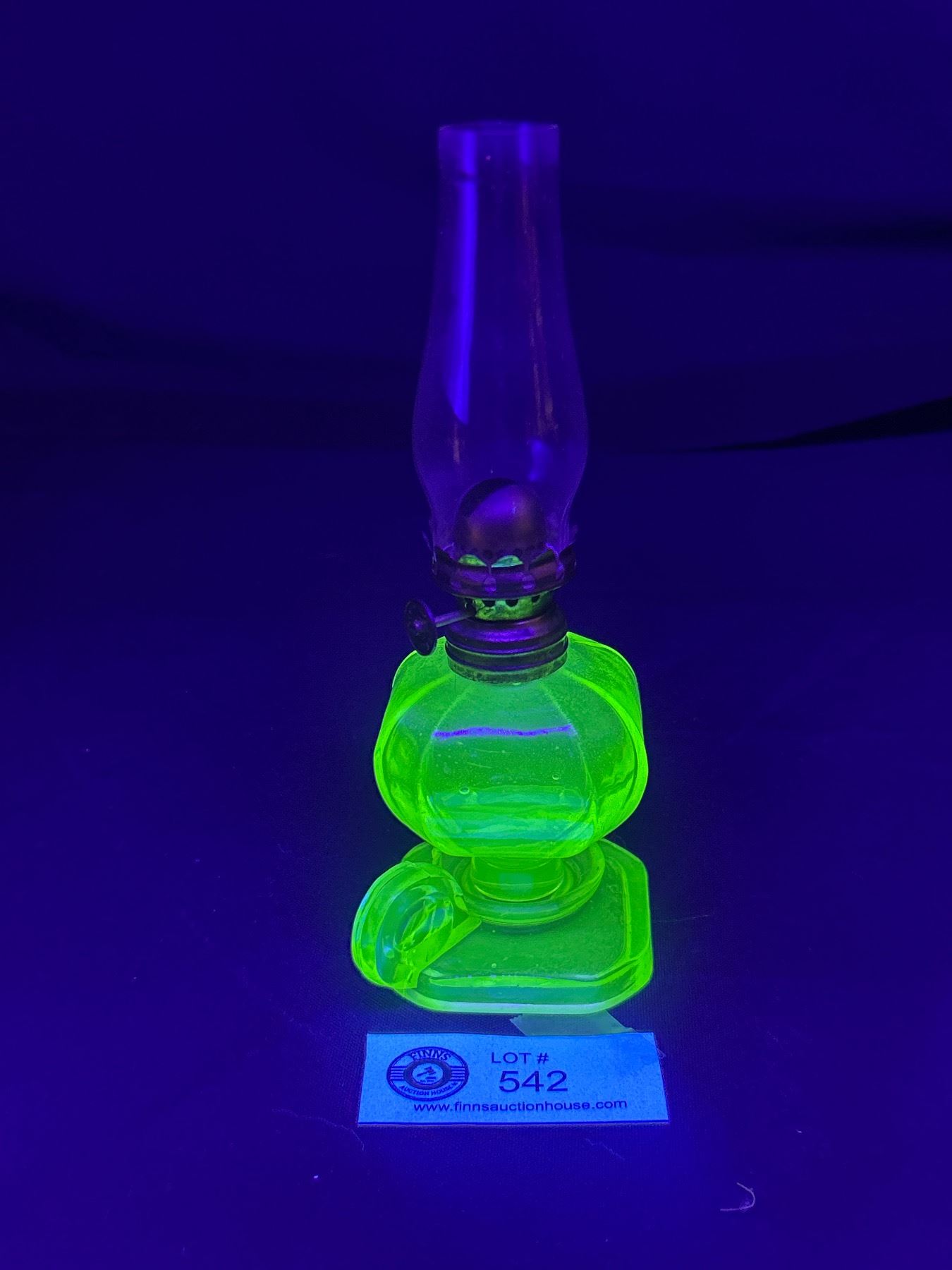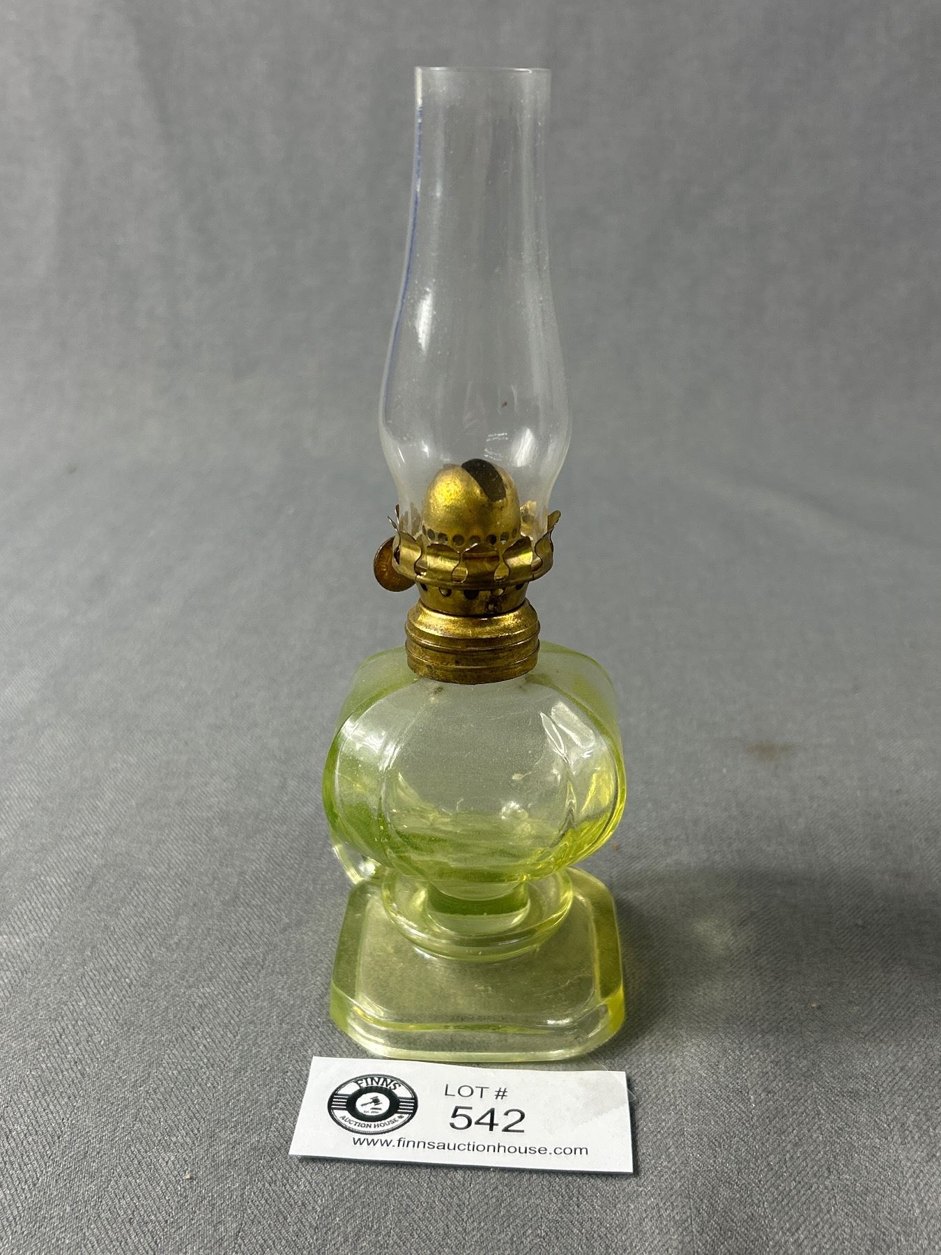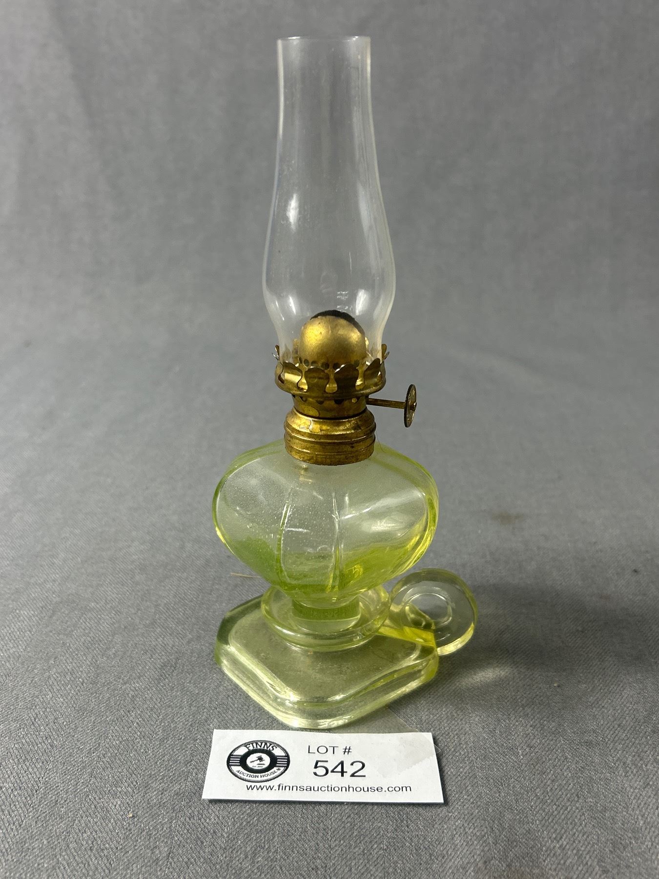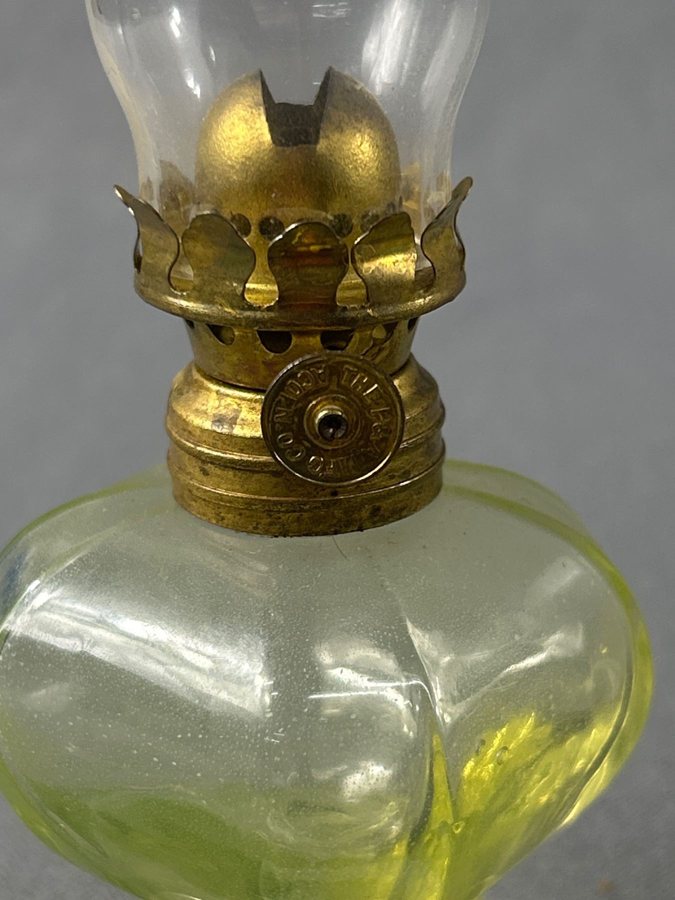 Antique "P&A MFG. CO. ACORN" ( Marked On Wick Adjuster), Small Uranium Glass Oil Finger Lamp. Approx. 7.5"H