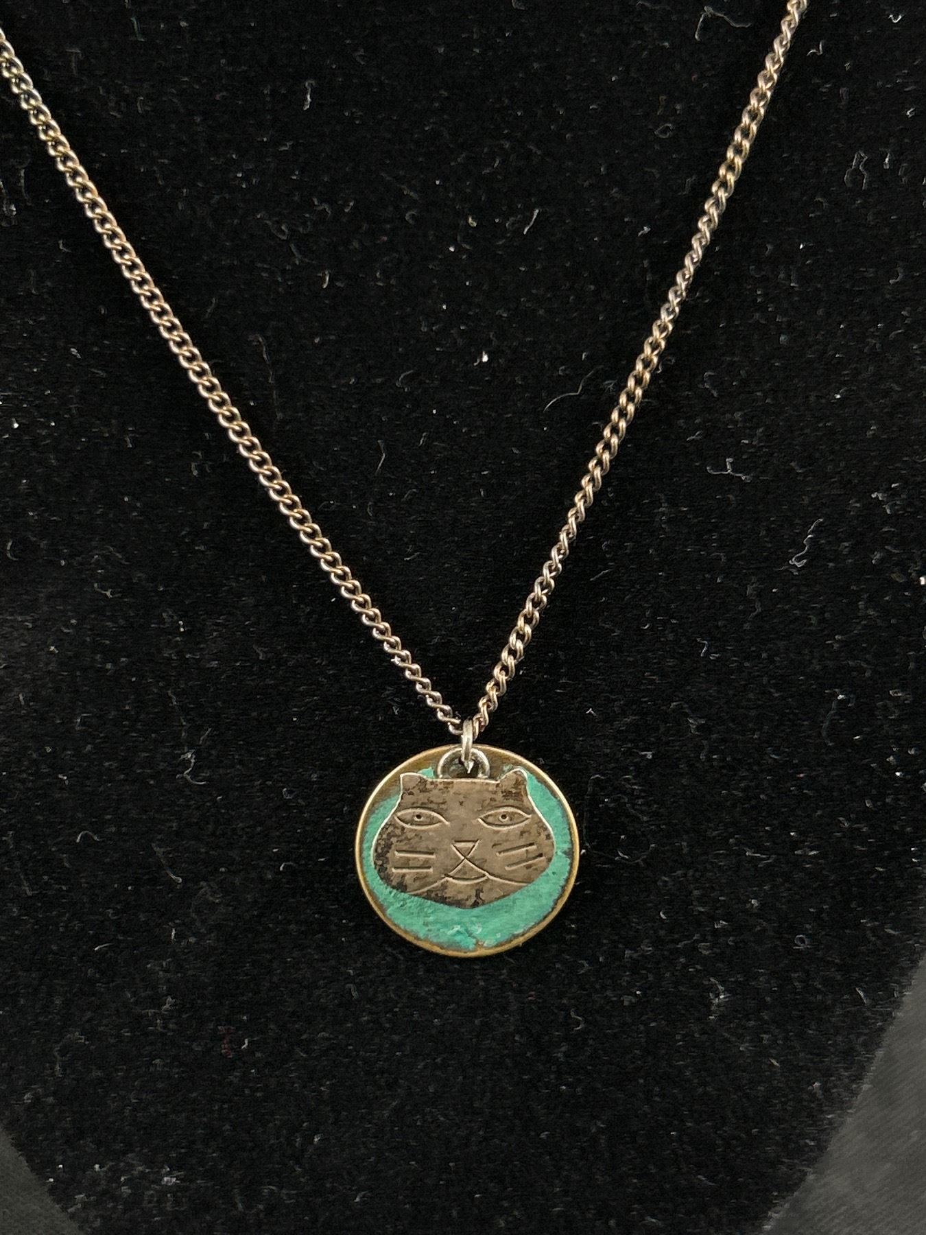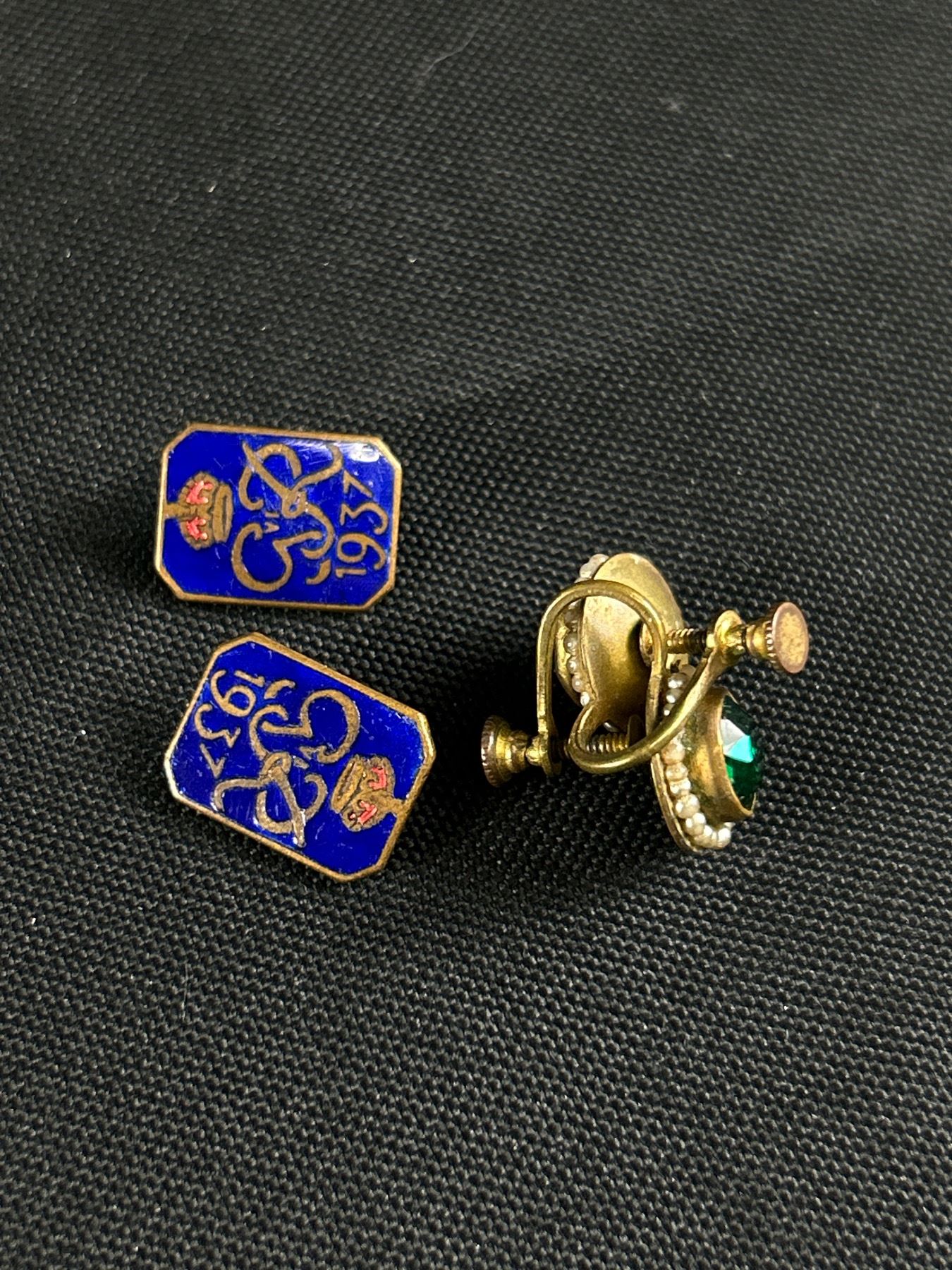Antique Pendant with Chain Necklace Pair of Screw on Earrings & Pair of Enamel Buttons
