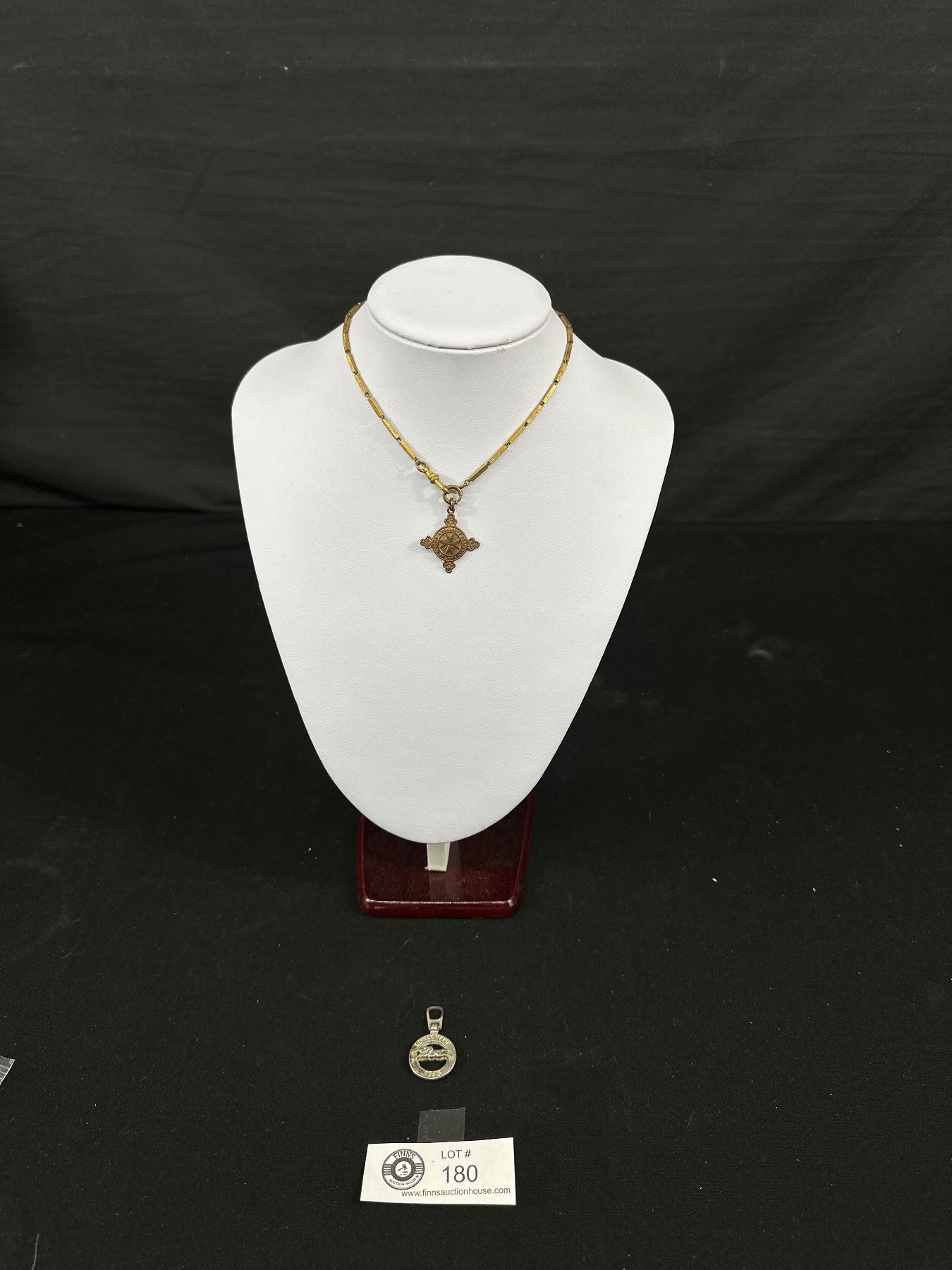 Antique Pocket Watch Chain & Fob & 1948 Longchamp Fob