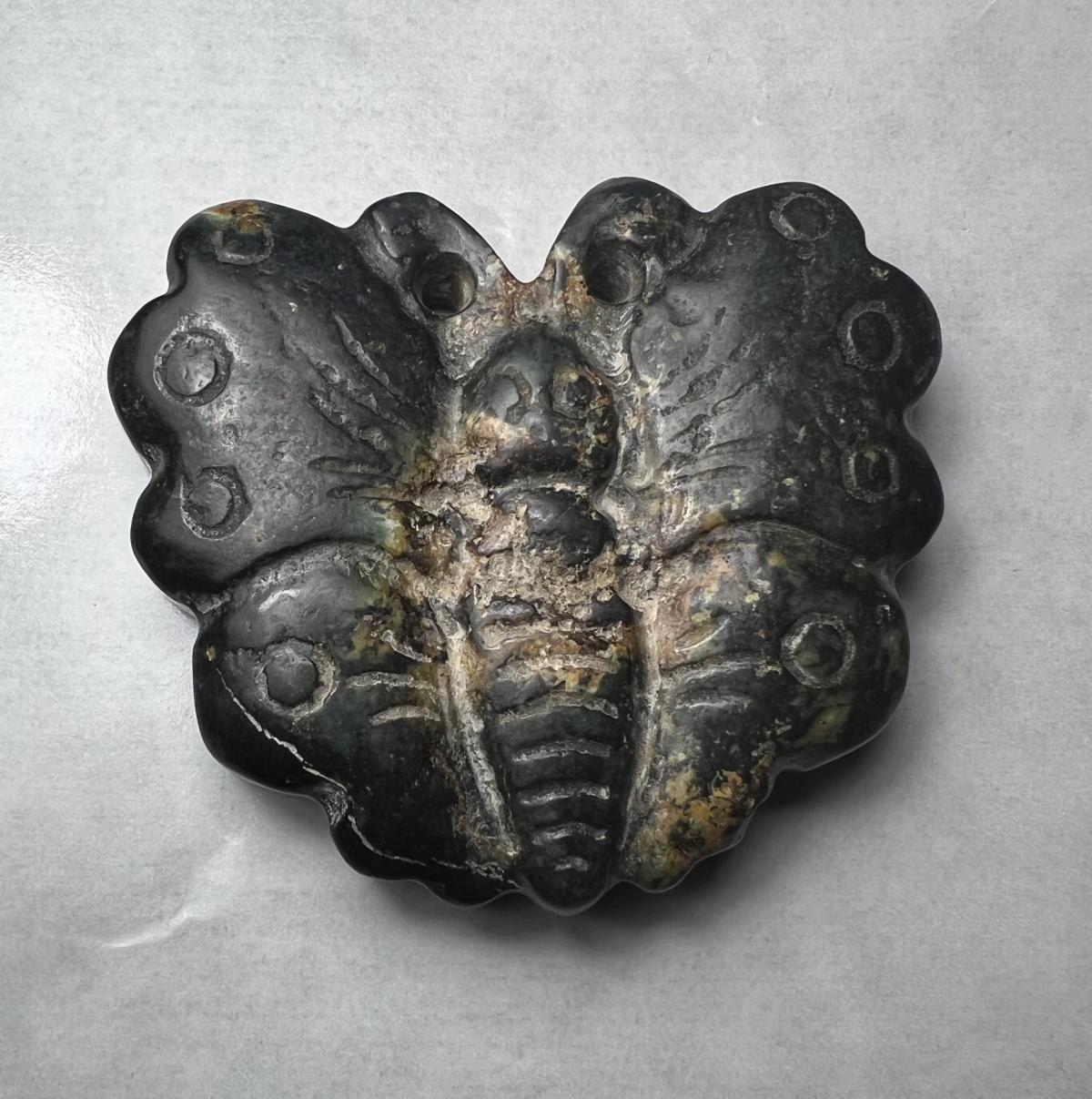 Antique Rare Chinese Jade Butterfly Pendant.........Size - 2.8 x 2.4 Inch; Antique Black Jade hand carved butterfly pendant.