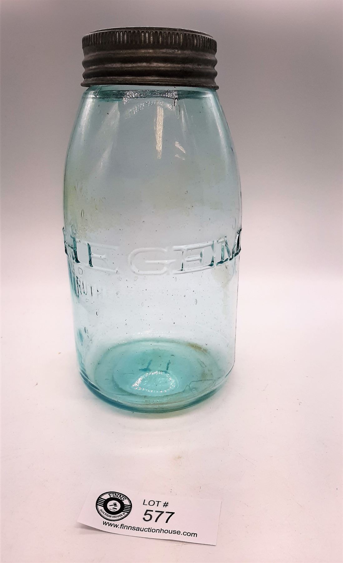 Antique Rutherford and Co. The Gem Fruit Jar Aqua Colour