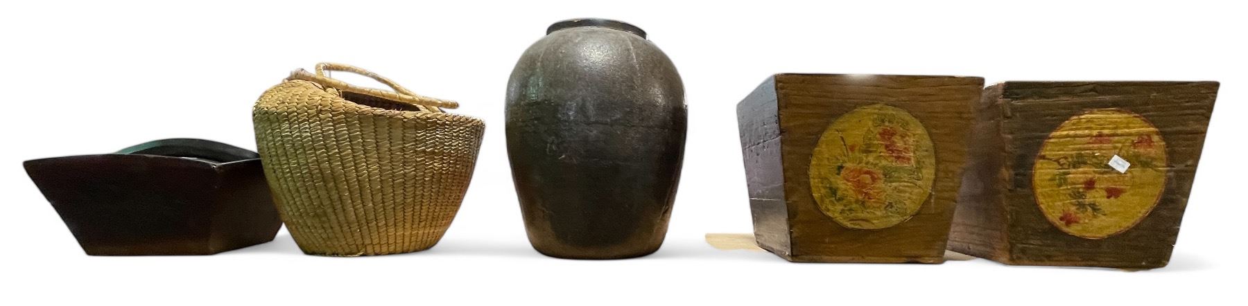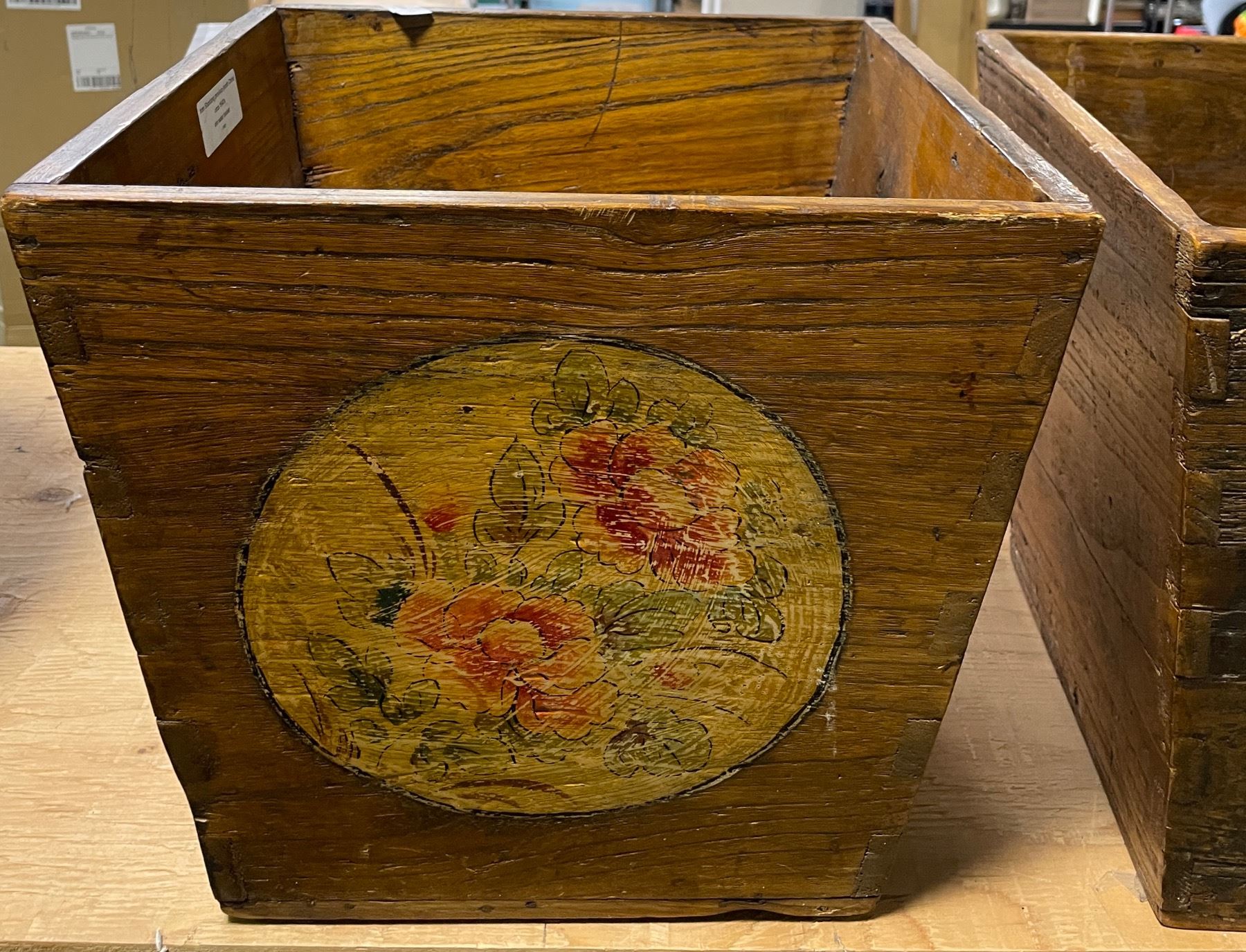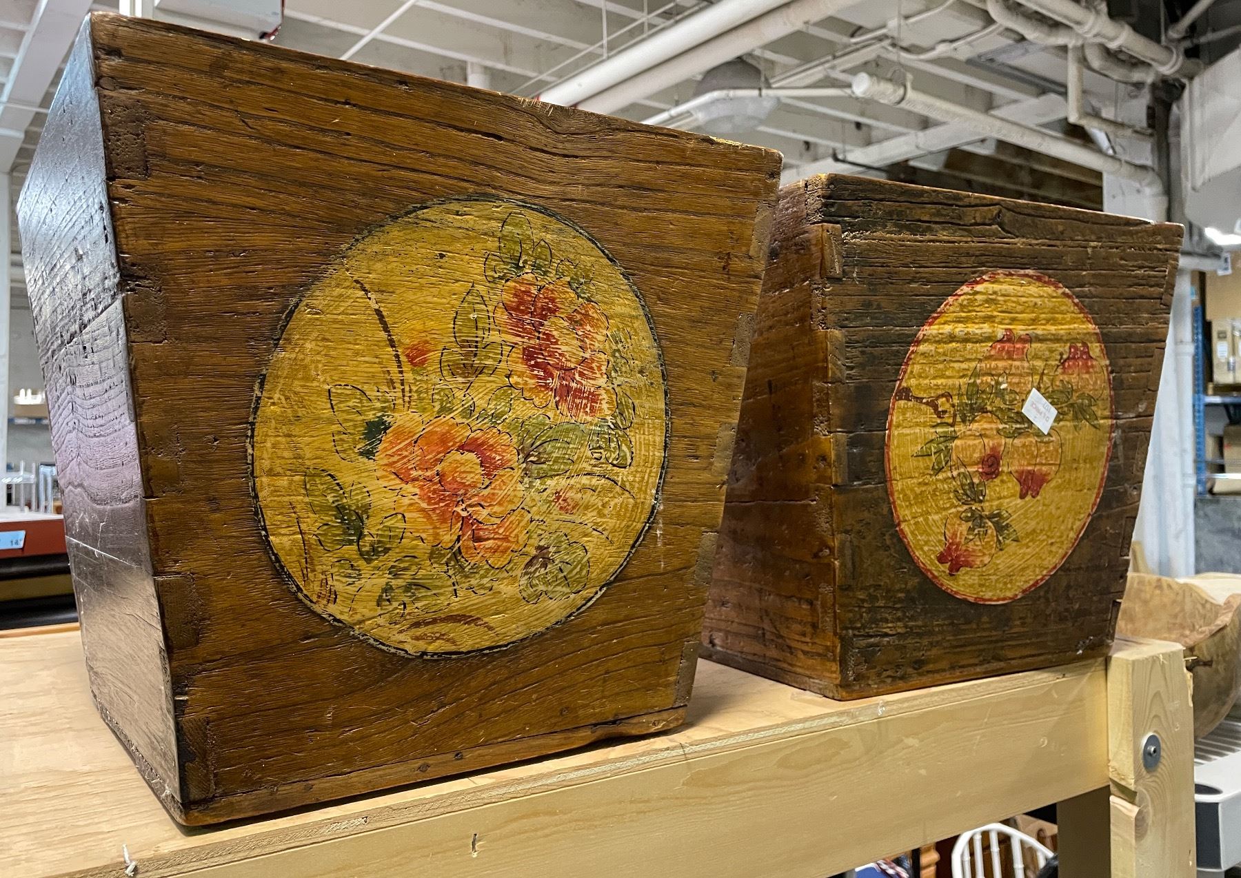 Antique Small Furnitures Lot - includes Set of 2 Hand Painted early 1900's Storage Wooden Boxes/ Vase & More