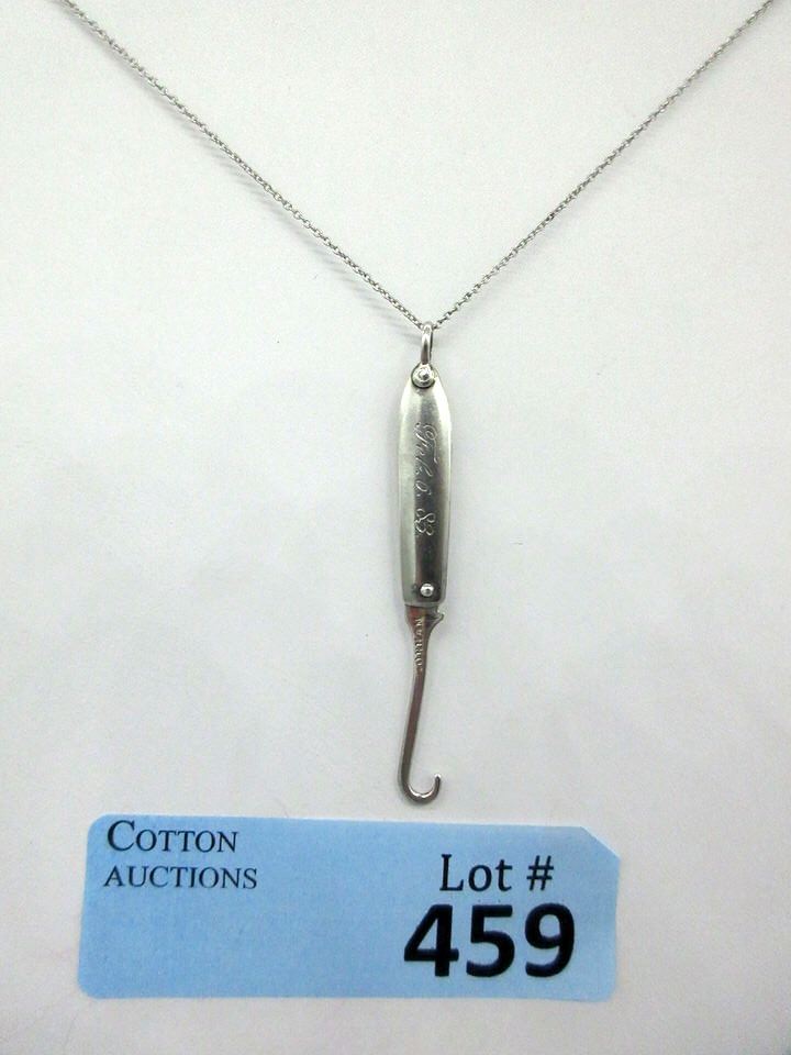2.5" long. Hallmarked Gorham. Engraved Feb. 6. 83. Could be a coat, shoe or button hook.