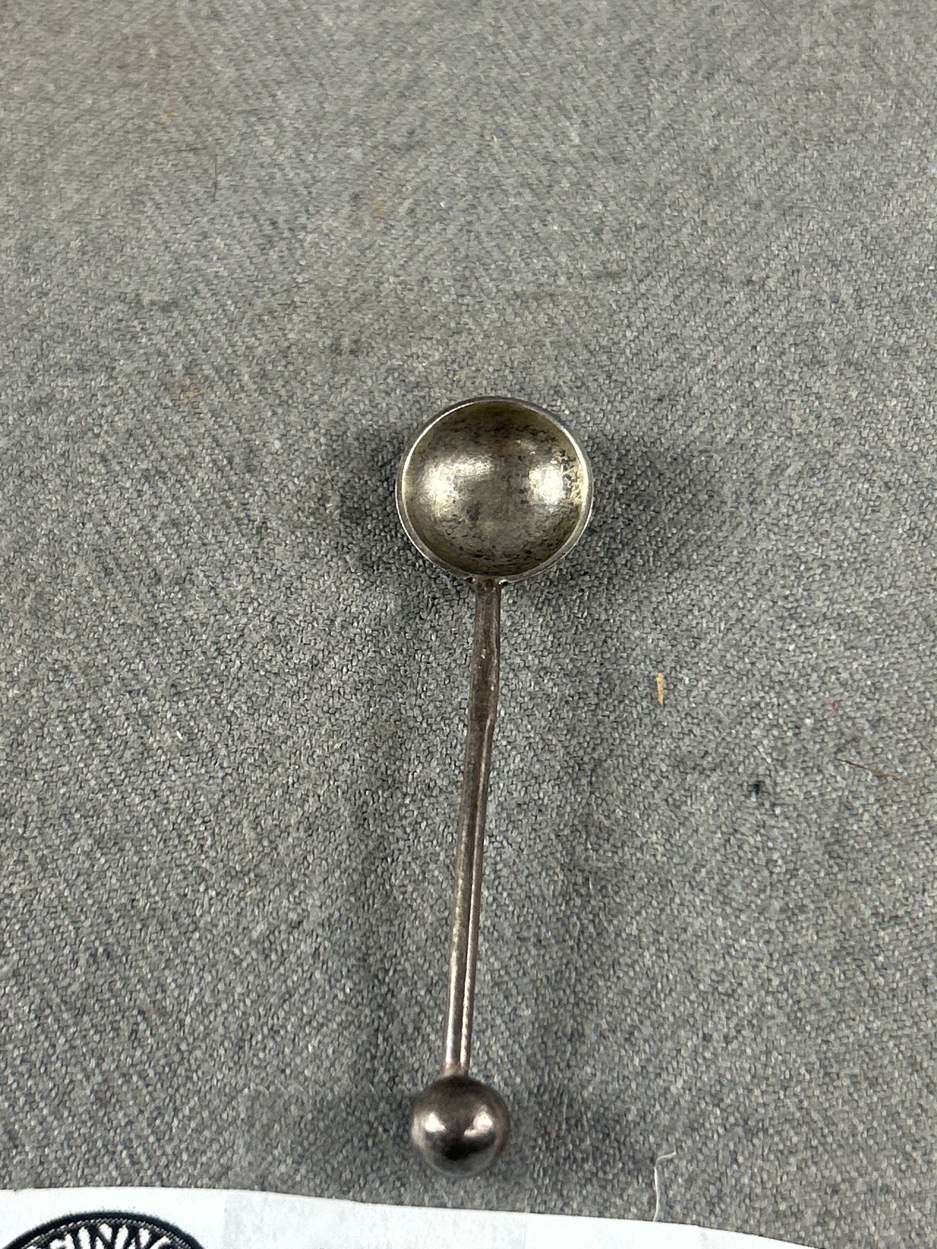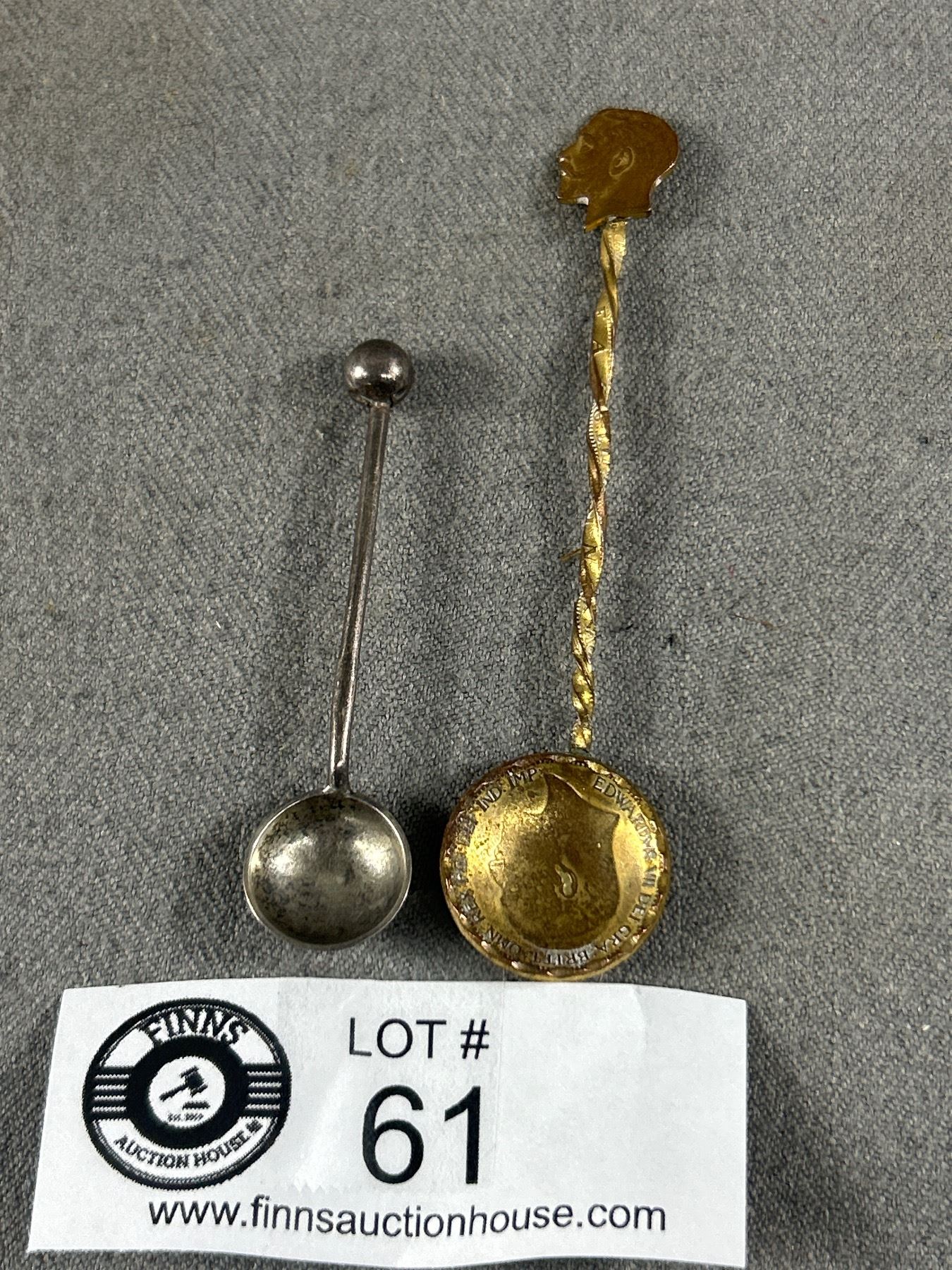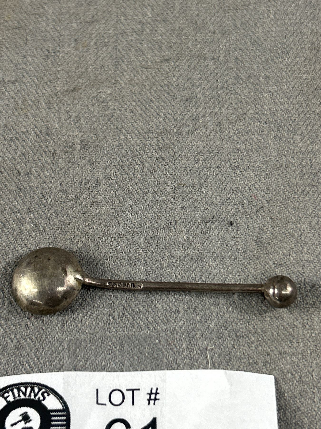 Antique Sterling Silver Salt Spoon & Edward VII Coin Salt Spoon