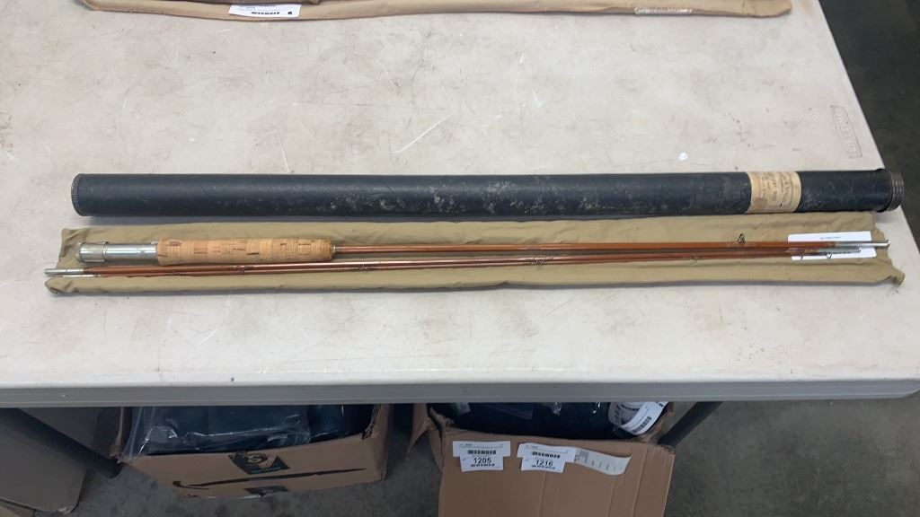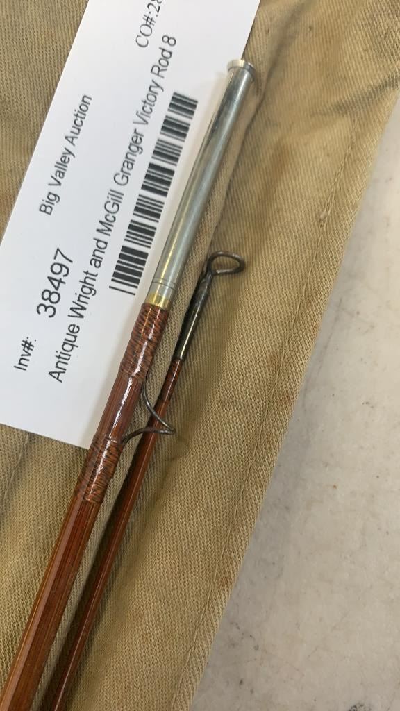 Antique Wright and McGill Granger Victory Rod 8 foot 4 weight bamboo fly rod with original tube