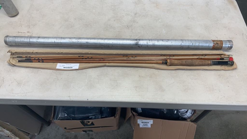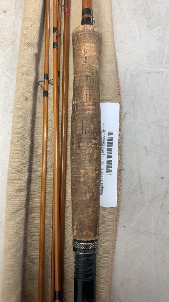 Antique heddon 8 1/2 ft 3 piece bamboo fly rod with three additional tips original sleeve and Tube