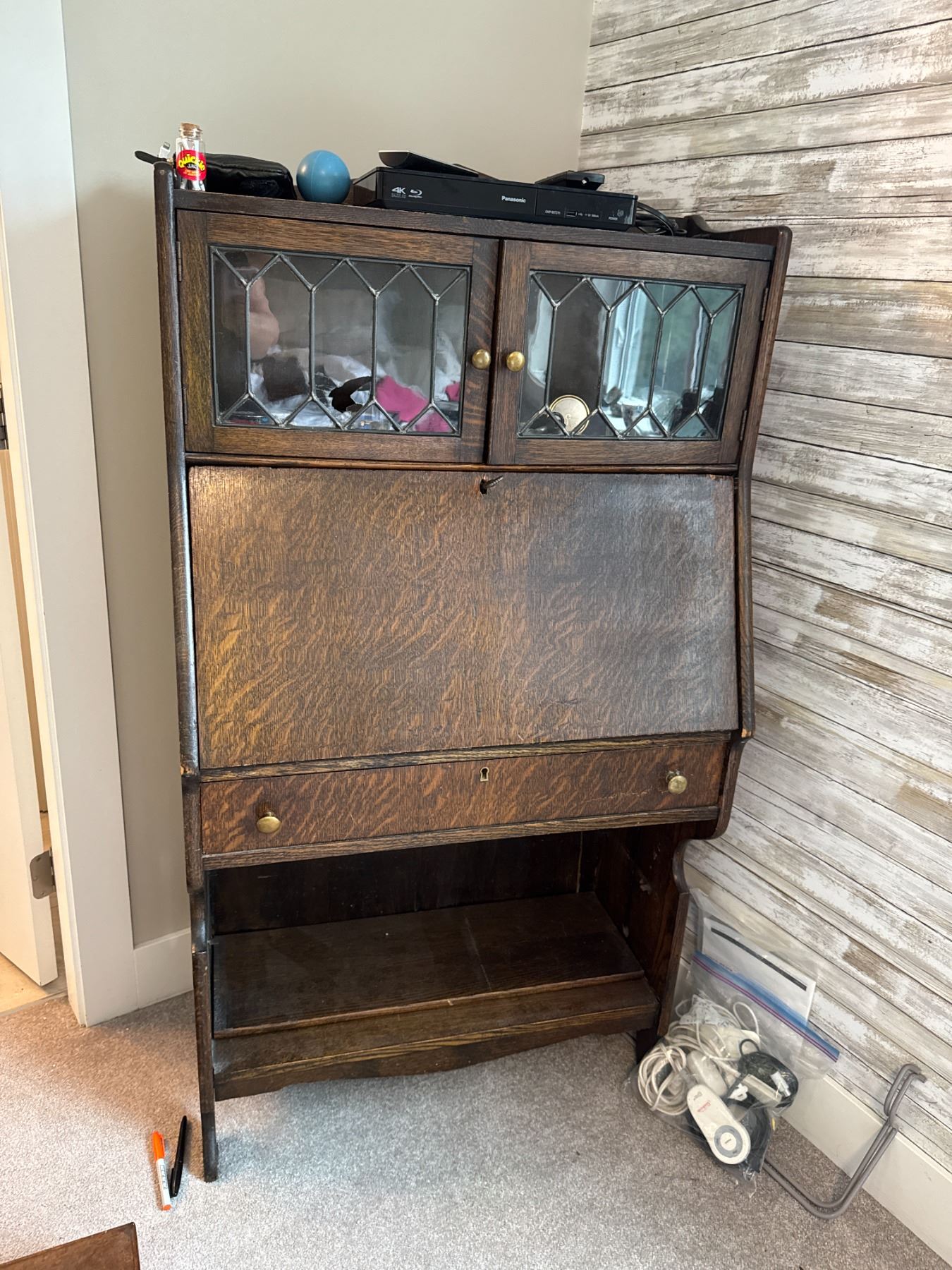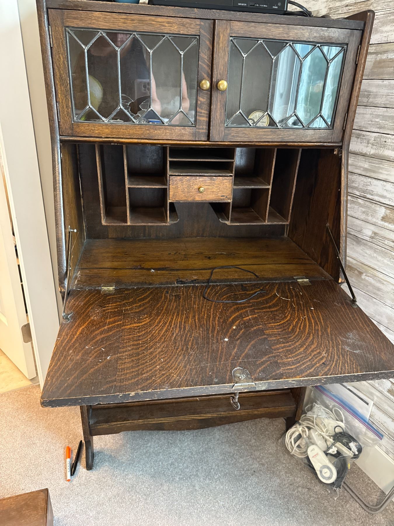 Antique oak Drop front desk measures 29 1/2" x 15 1/4" x 54 1/2" tall