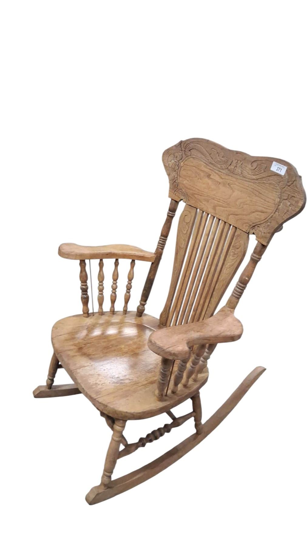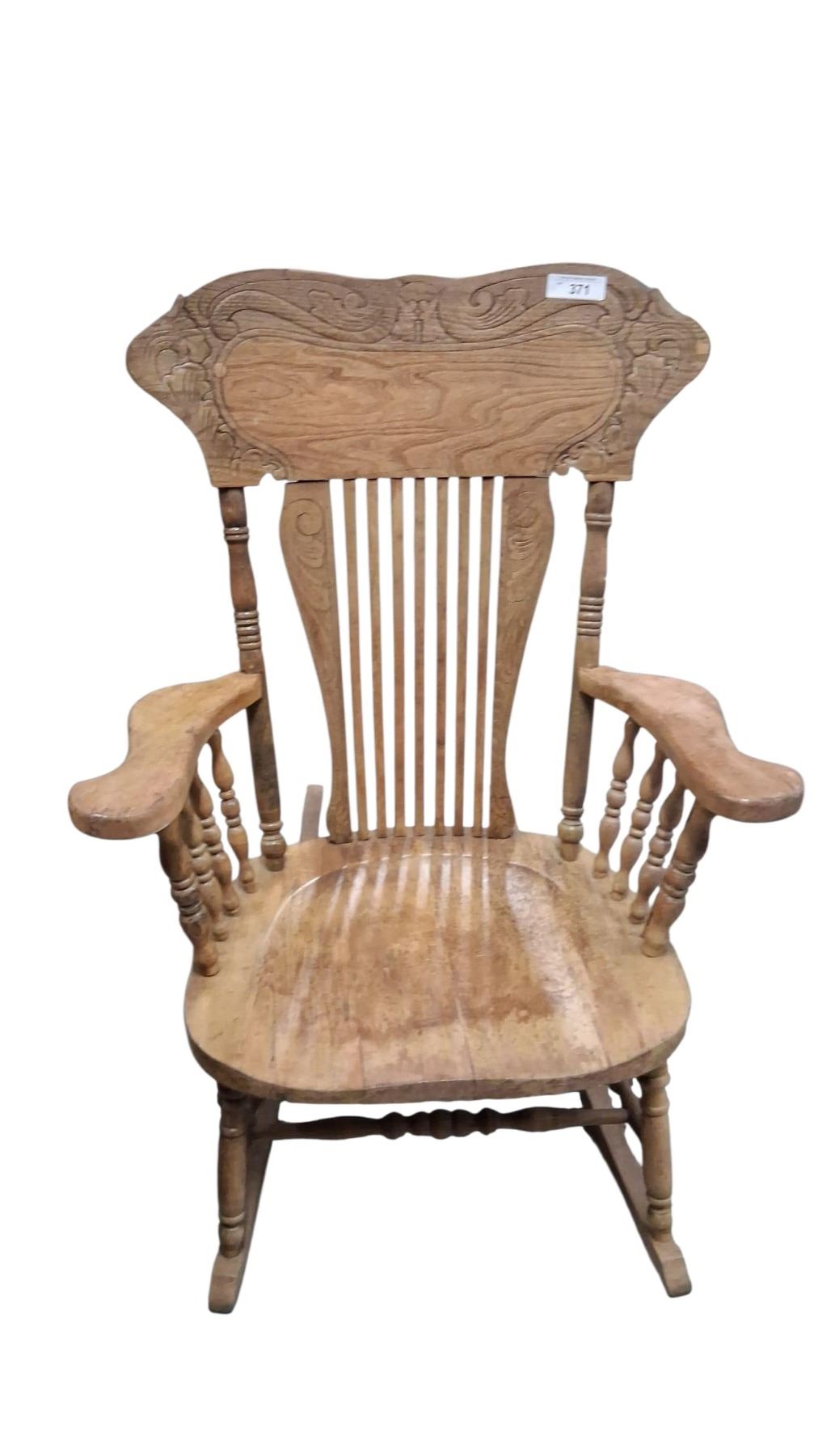 Antique pressback rocking chair with extra wide seat, 40" tall