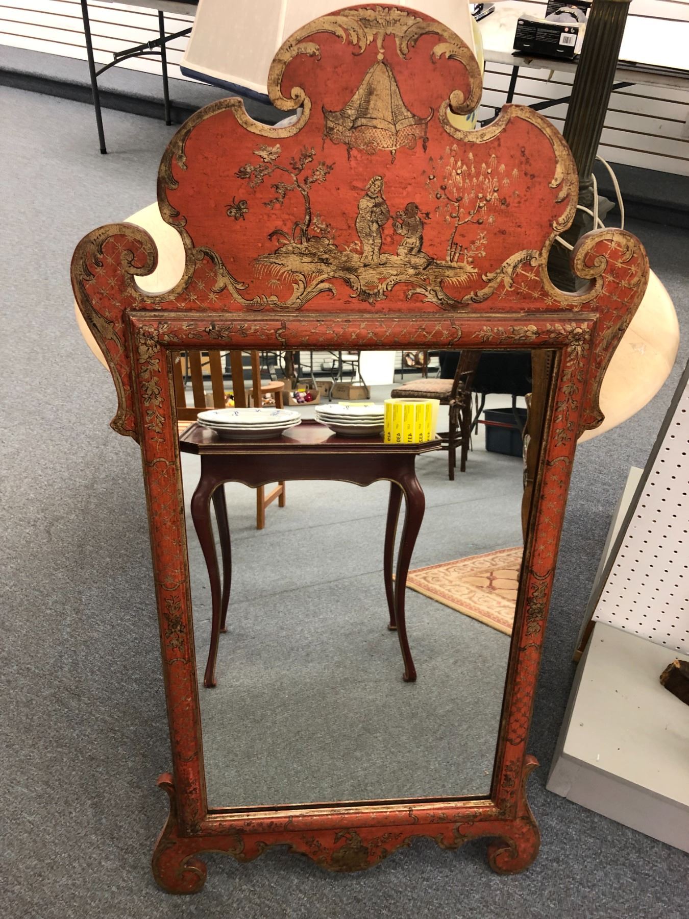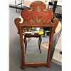 Antique wood framed Asian crafted decorative wall mirror - Mongolian style motif - 25in wide x 49 1/2in tall