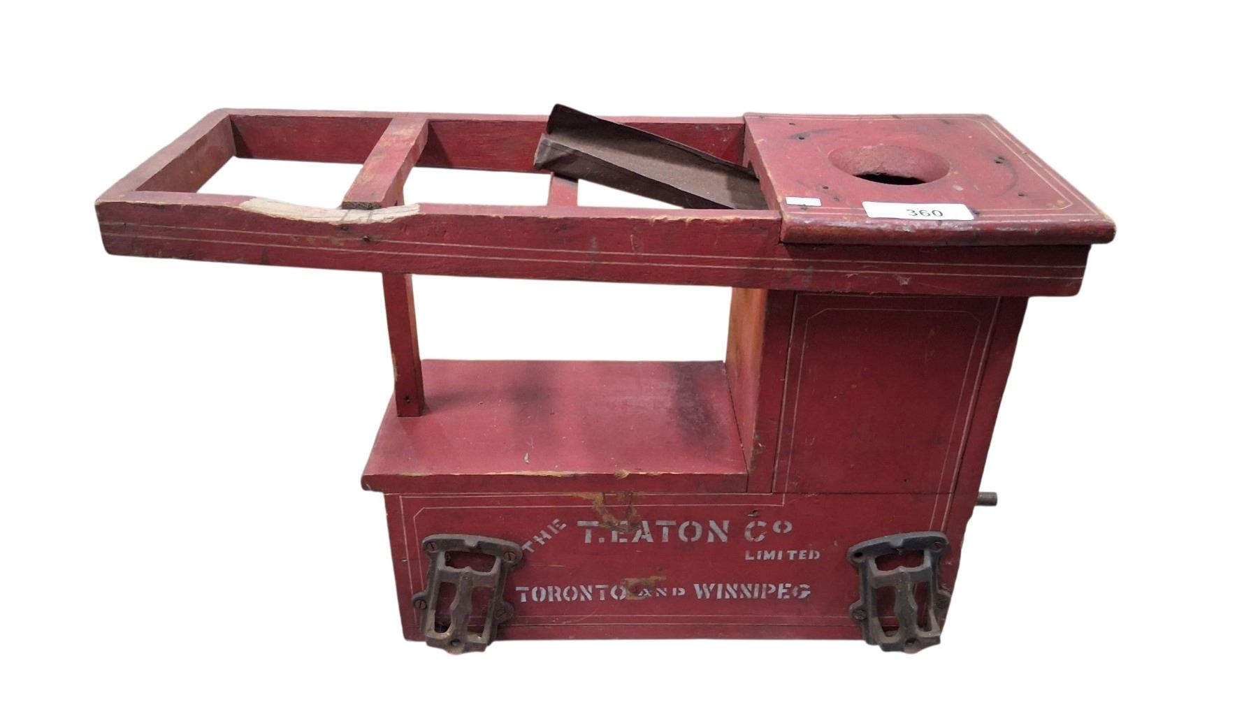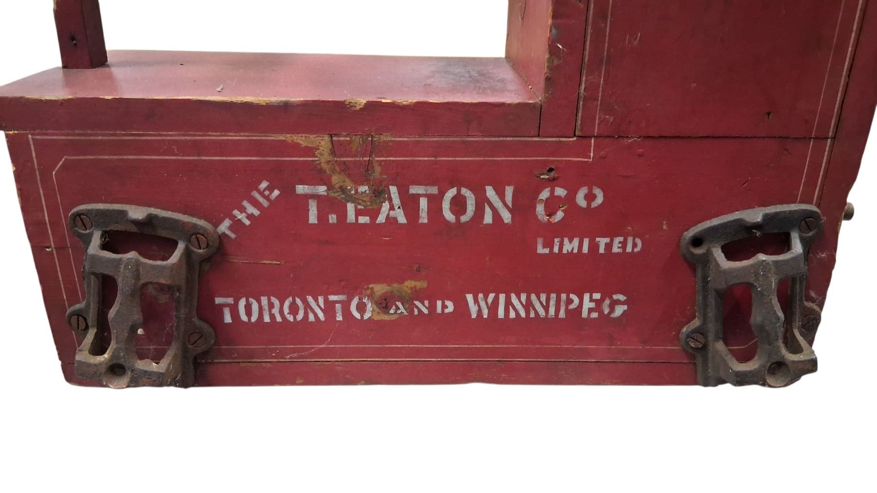 Antique wooden hammer mill/grain cleaner by T. Eaton Co. 26"x16"x9" missing crank handle