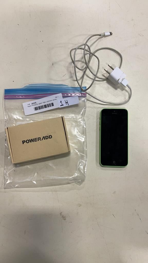 Apple iPhone 5c, green 16gb, unknown carrier, with charger and new 10,000 mAh battery backup - Tested working, ready to use! Clean imei