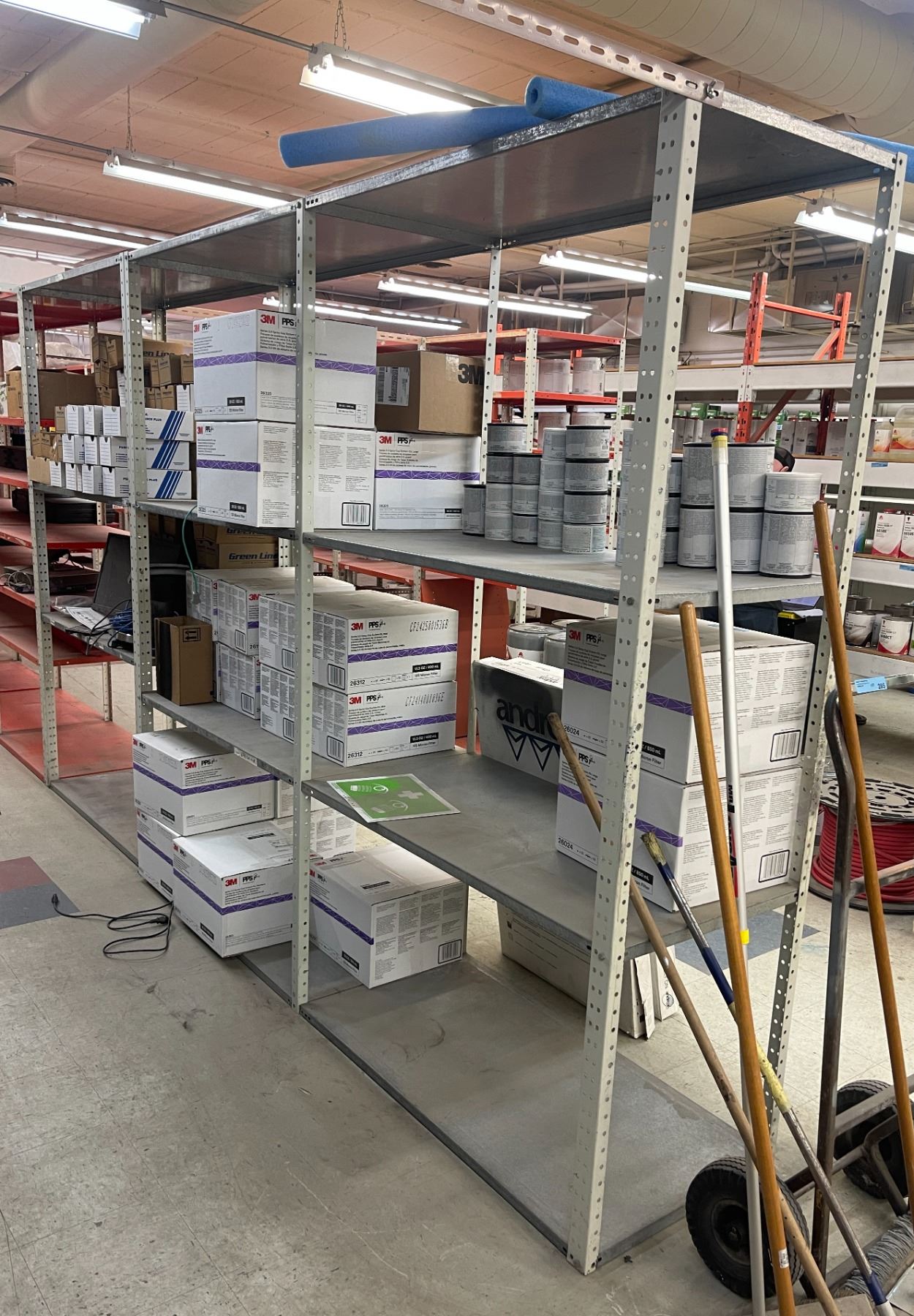 Approx 12' feet metal shelving (DOES NOT INCLUDE CONTENTS)