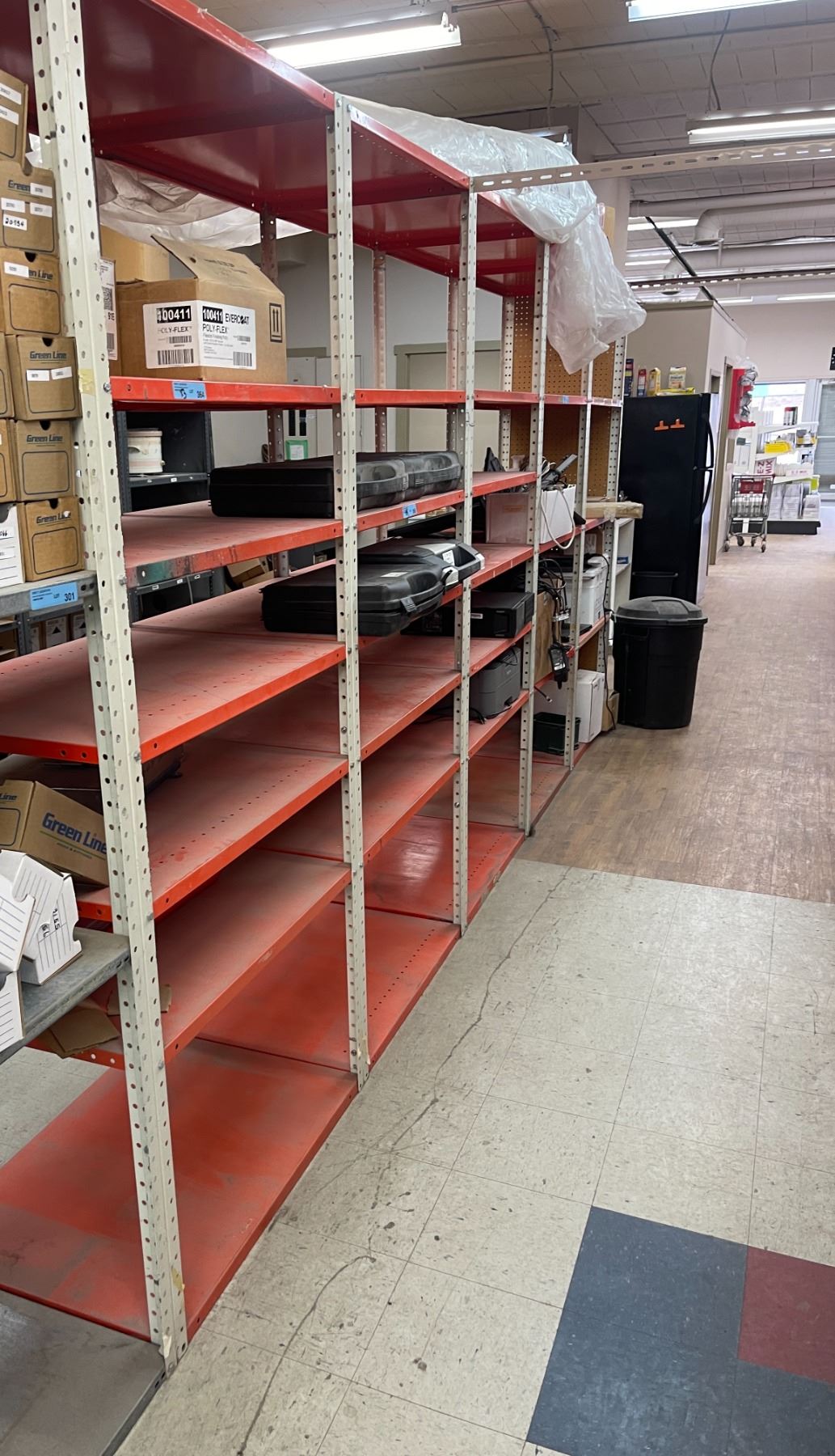 Approx 15' feet metal shelving (DOES NOT INCLUDE CONTENTS)