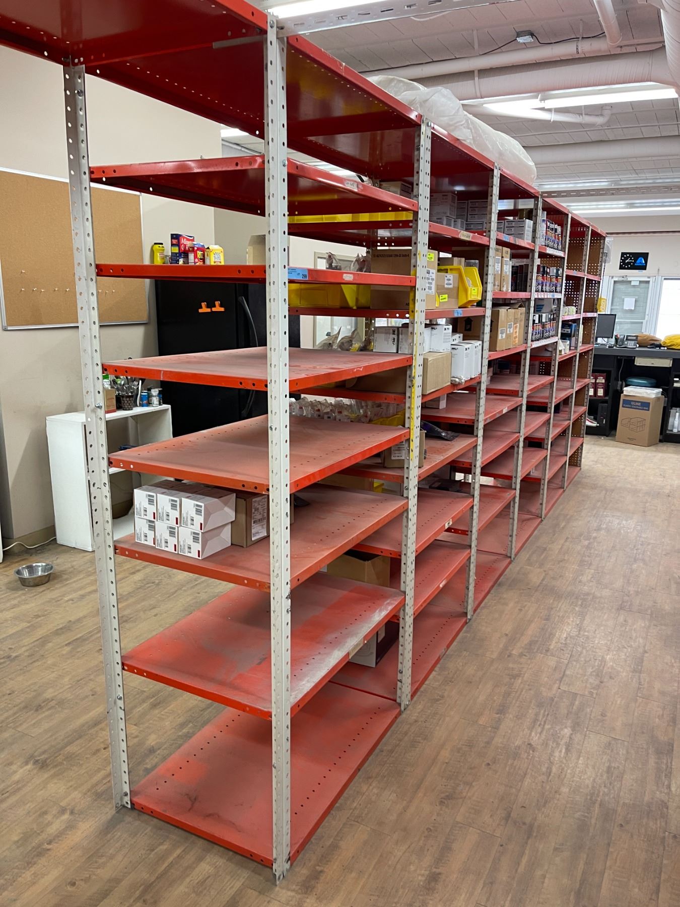 Approx 18' feet metal shelving (DOES NOT INCLUDE CONTENTS)