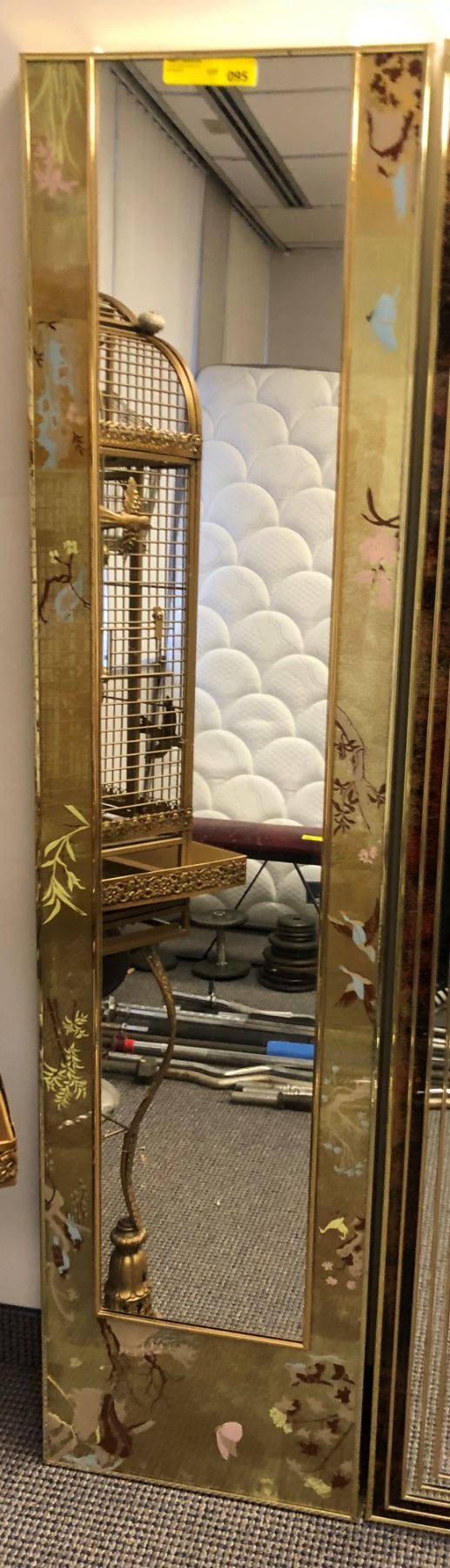 Approx 6’ tall mirror from Show, slight damage on corner brass