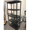 Approx. 6ft. tall x 3 1/2ft. wide black plastic shelving unit