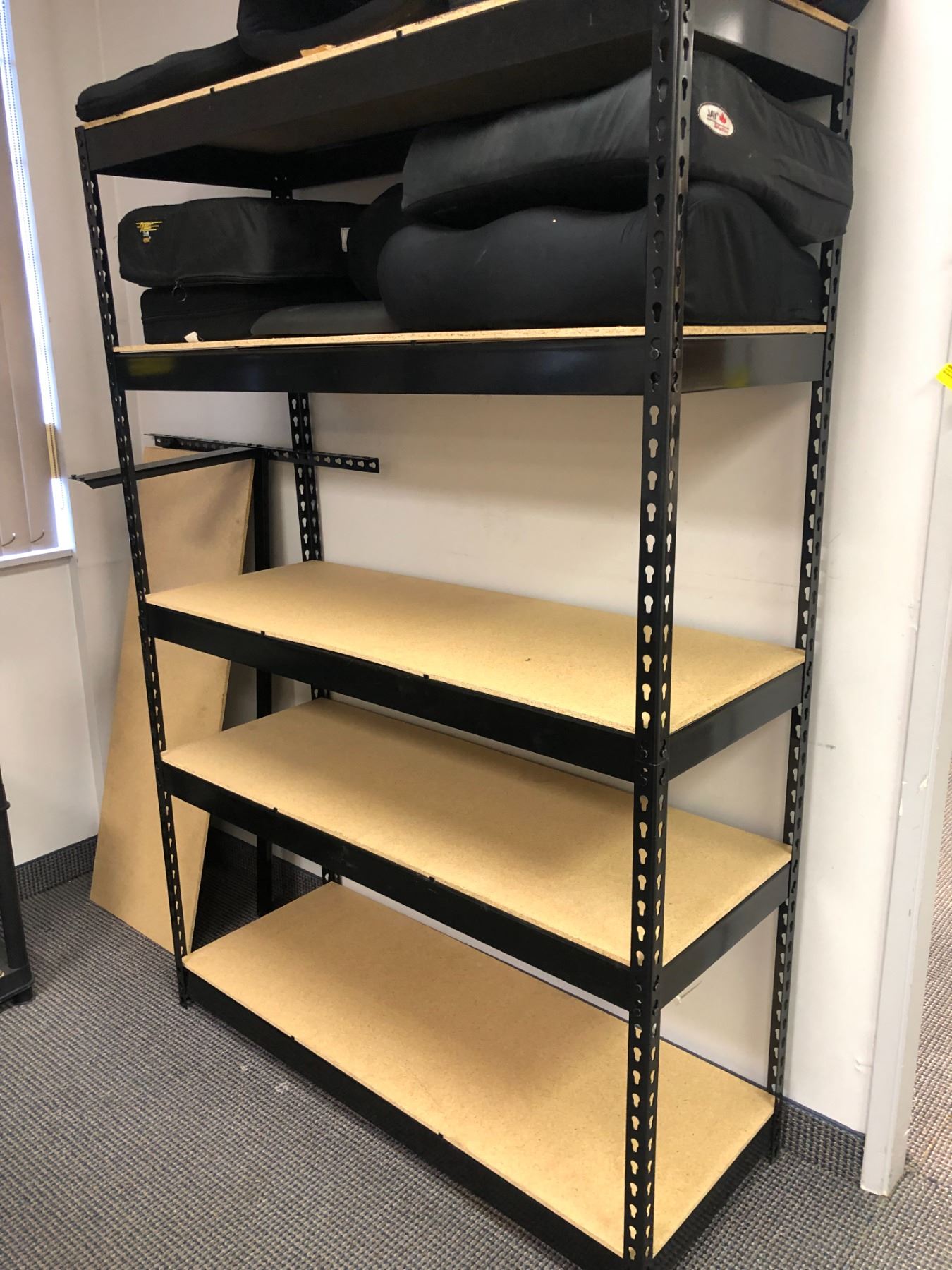 Approx. 6ft. tall x 4 1/2ft. wide black adjustable shelving unit